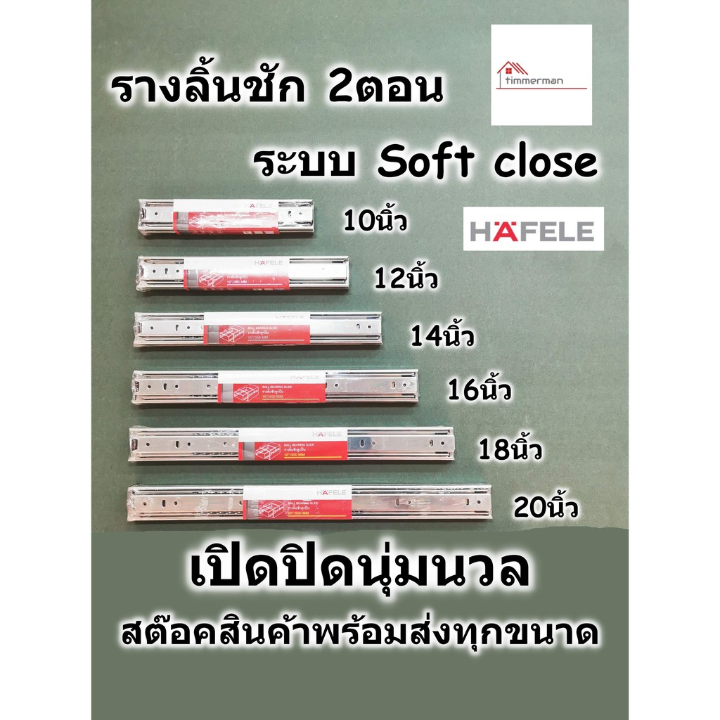 HAFELE รางลิ้นชัก 2ตอน ระบบ soft close เปิดปิดนุ่มนวล มีขนาดตั้งแต่ 10นิ้ว - 20นิ้ว ของแท้ 100%