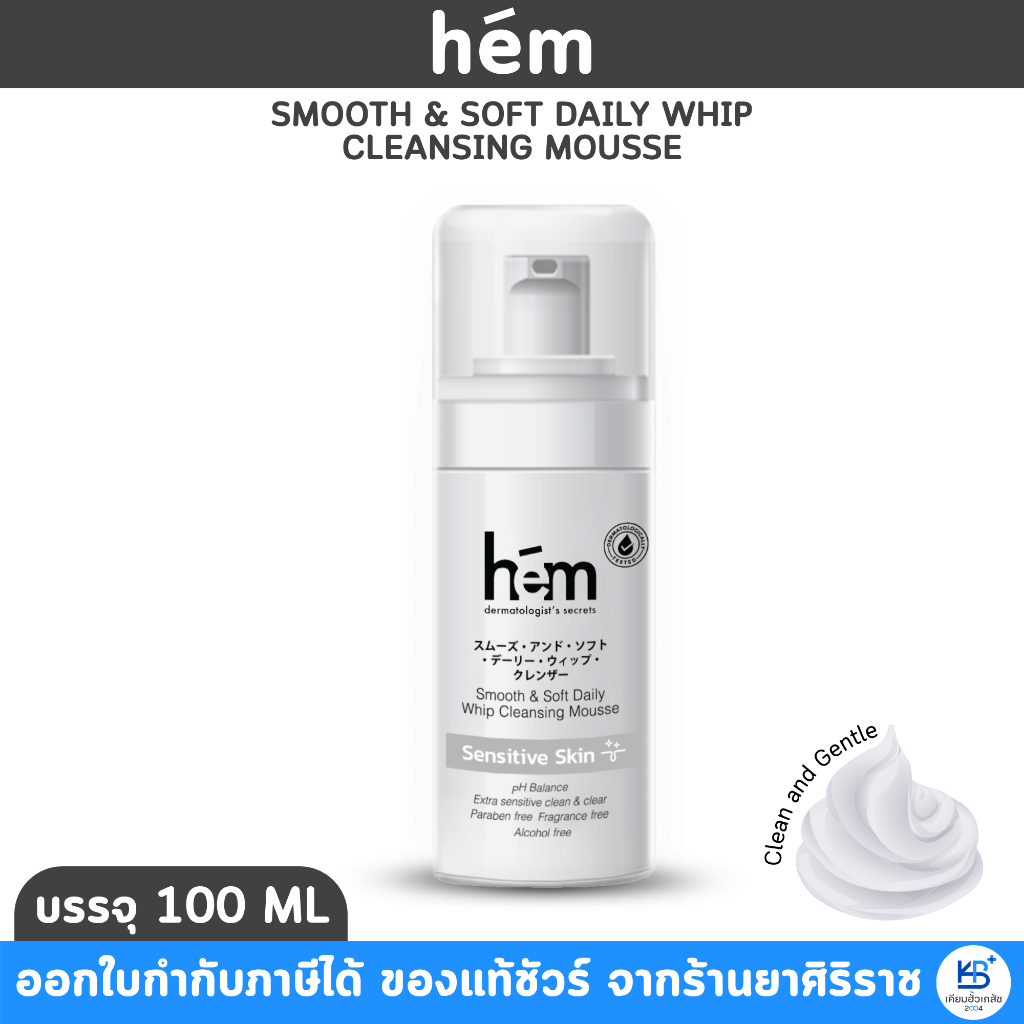 [มีโค้ดลด 20.-] H.E.M SMOOTH & SOFT DAILY WHIP CLEANSING MOUSSE (100ml) โฟมล้างหน้า