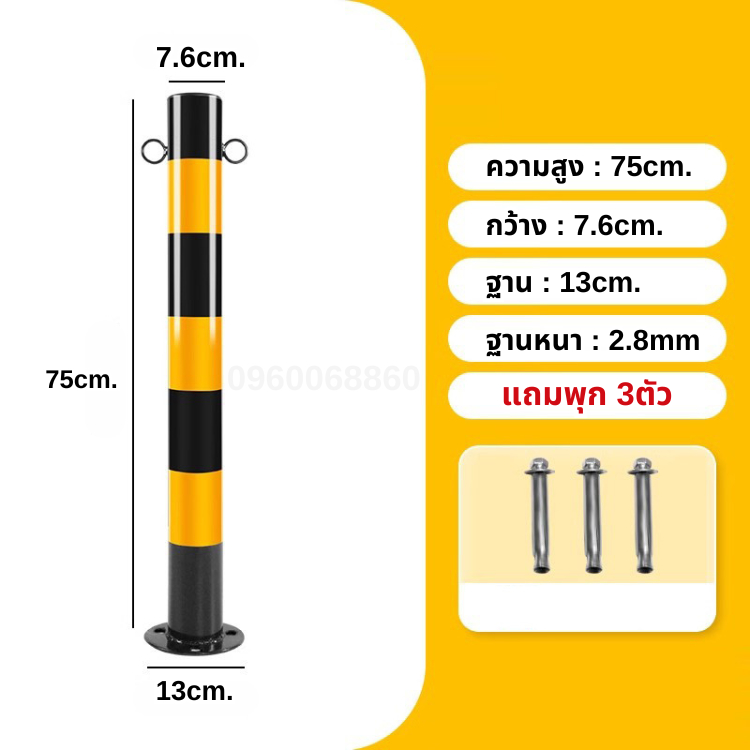 เสาจราจรเหล็ก สีดำ-แถบเหลือง เสาเหล็กกันชน เสากั้นเขต เสากันชน เสาเหล็ก กันชน ยึดพื้นที่กั้นรถ (เสาเดี่ยว)