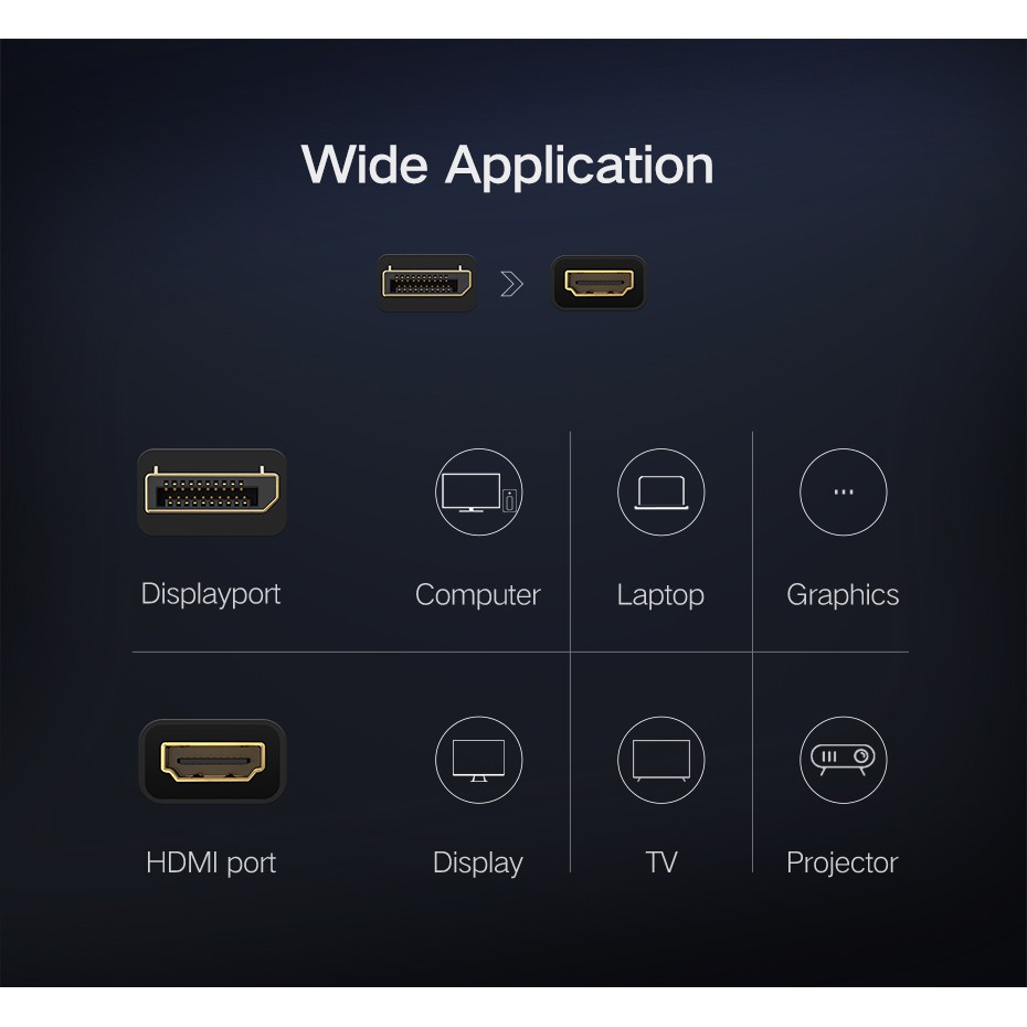 UGREEN รุ่น 40363 หางหนู Display Port to HDMI Male to Female Adapter รองรับ 4K สายยาว 25cm