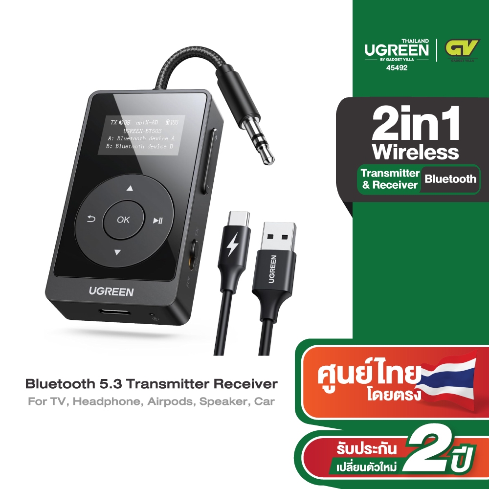 UGREEN รุ่น 35222 เครื่องรับส่งสัญญาณบลูทูธ 5.2 สําหรับเครื่องขยายเสียงรถ ยนต์ ทีวี คอมพิวเตอร์ หูฟัง