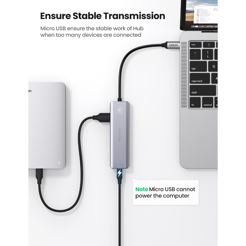 UGREEN อะแดปเตอร์ USB HUB 3.0 x4 พอร์ต Ultra Slim Plastic Case with 5V Micro USB Power รุ่น CM219