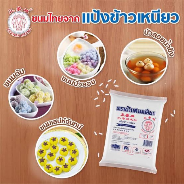 !!ขายยกลัง!! แป้งข้าวเหนียว ตราช้างสามเศียร (1 กิโลกรัม)