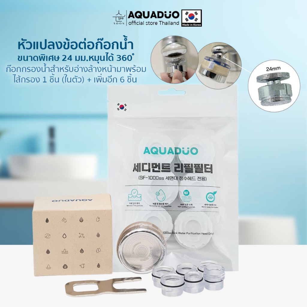 หัวต่อก๊อกกรองน้ำสำหรับอ่างล้างหน้าประหยัดน้ำได้มากถึง40%จากเกาหลี AQUADUO(อควาดูโอ)SF-1000SS