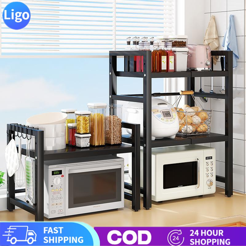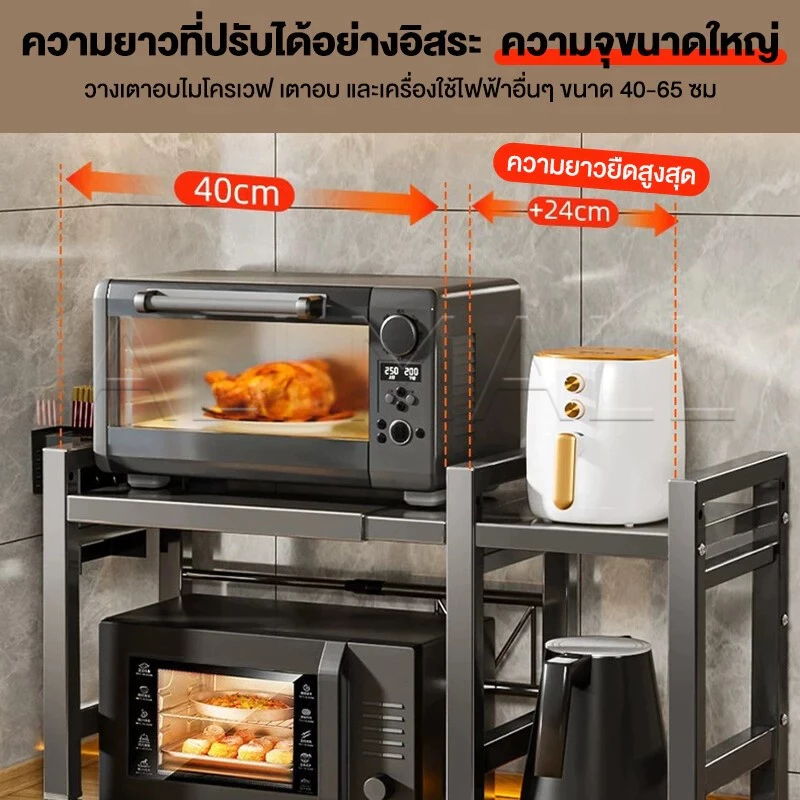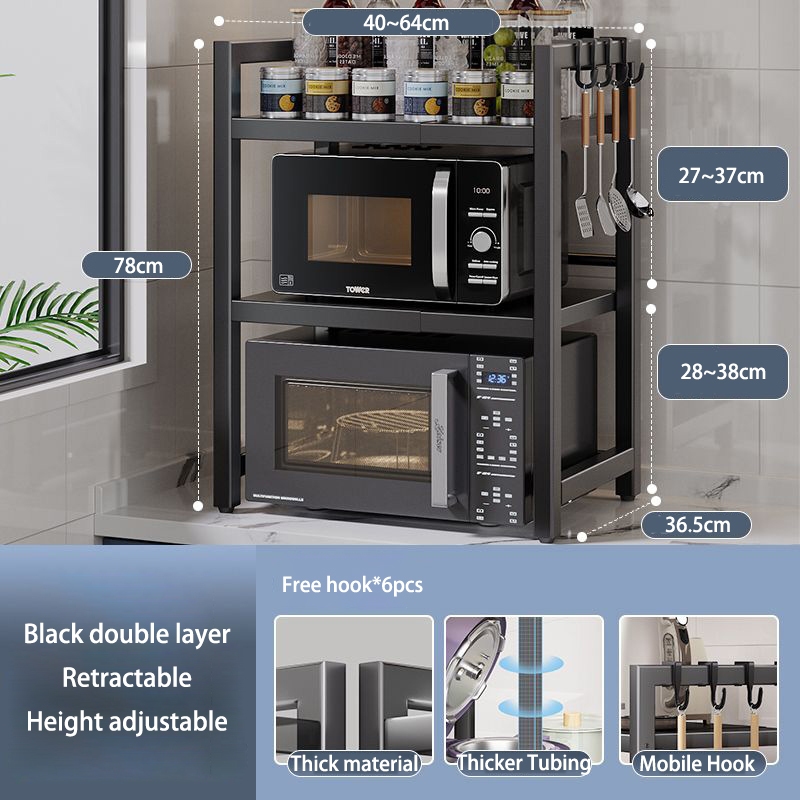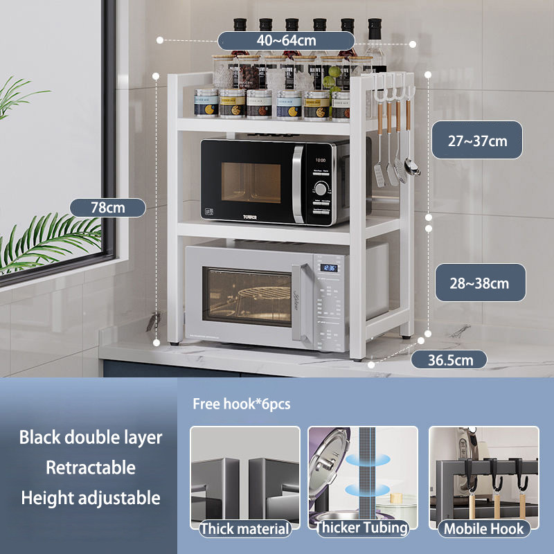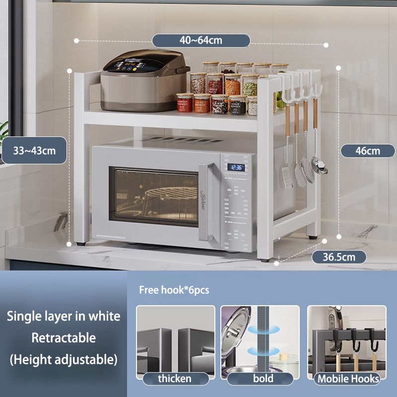 [พร้อมตะขอ*6] ชั้นวางเตาไมโครเวฟ 2/3 ชั้น/ชั้นวางเตาอบ ชั้นวางเก็บของในครัวแบบขยายได้ ชั้นวางปรับระดับความสูงได้ ชั้นวางเก็บของในครัวสแตนเลส/กันน้ำ กันสนิม