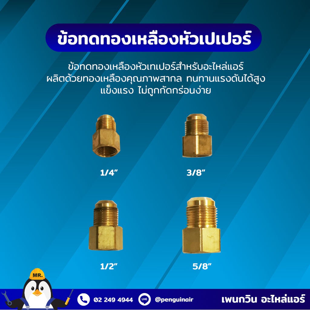 ข้อทดทองเหลืองหัวเปเปอร์ หลายขนาด 1/4,3/8,1/2,5/8 เกรดดีกว่าทั่วๆไป ผลิตในโรงงานไทย