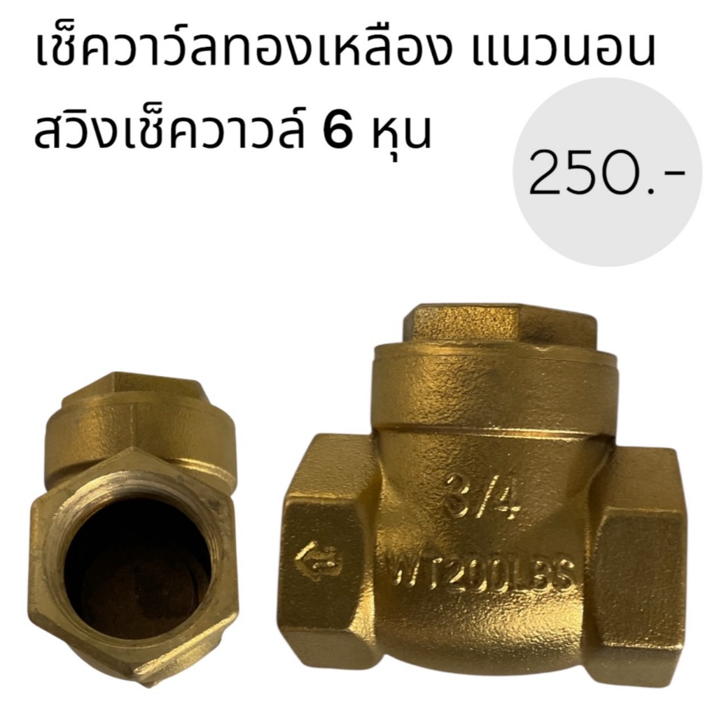 เช็ควาล์วทองเหลือง แนวนอน วาล์วกันน้ำย้อน เช็ควาล์วทองเหลือง 6 หุน