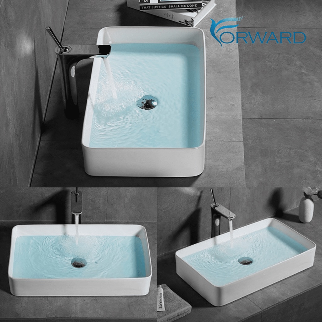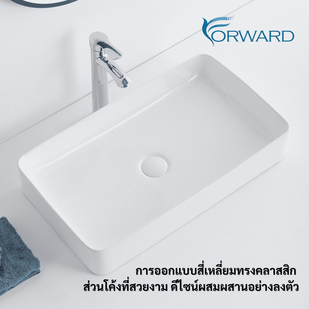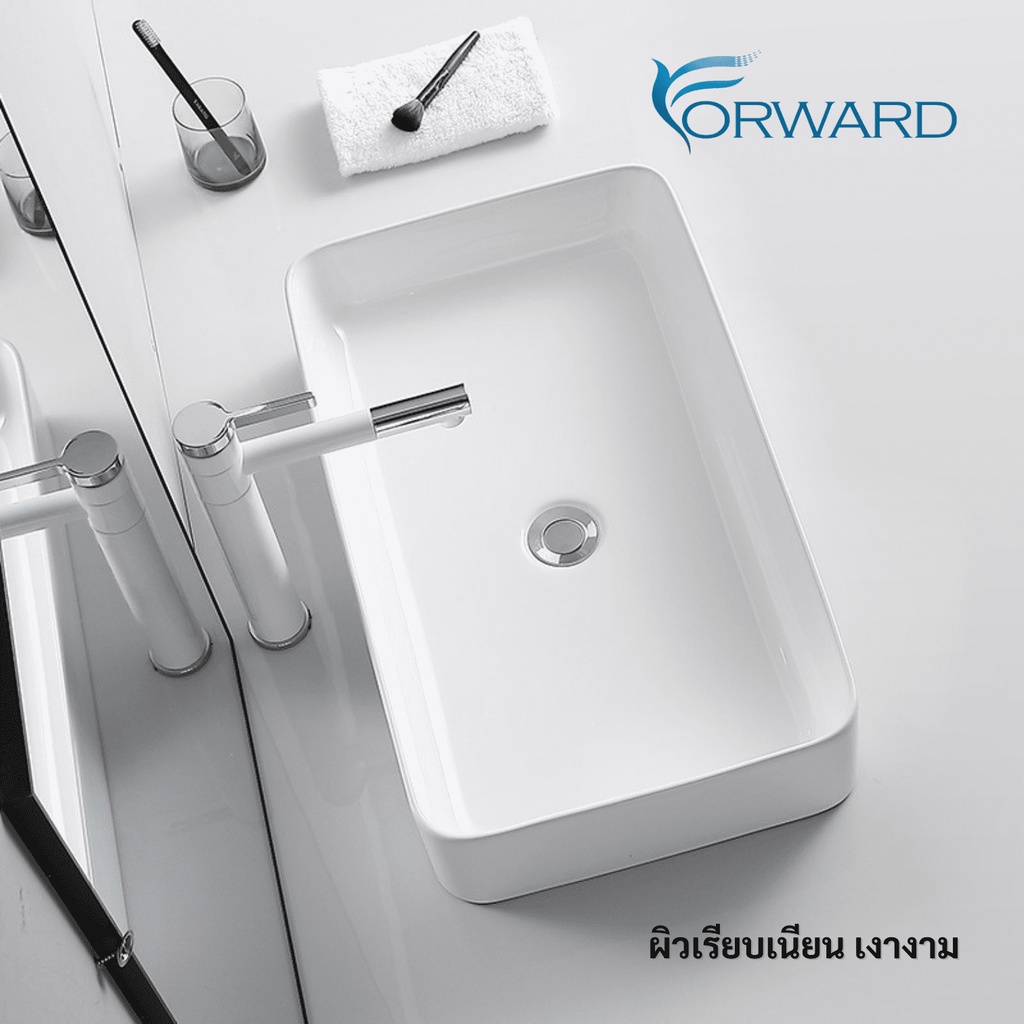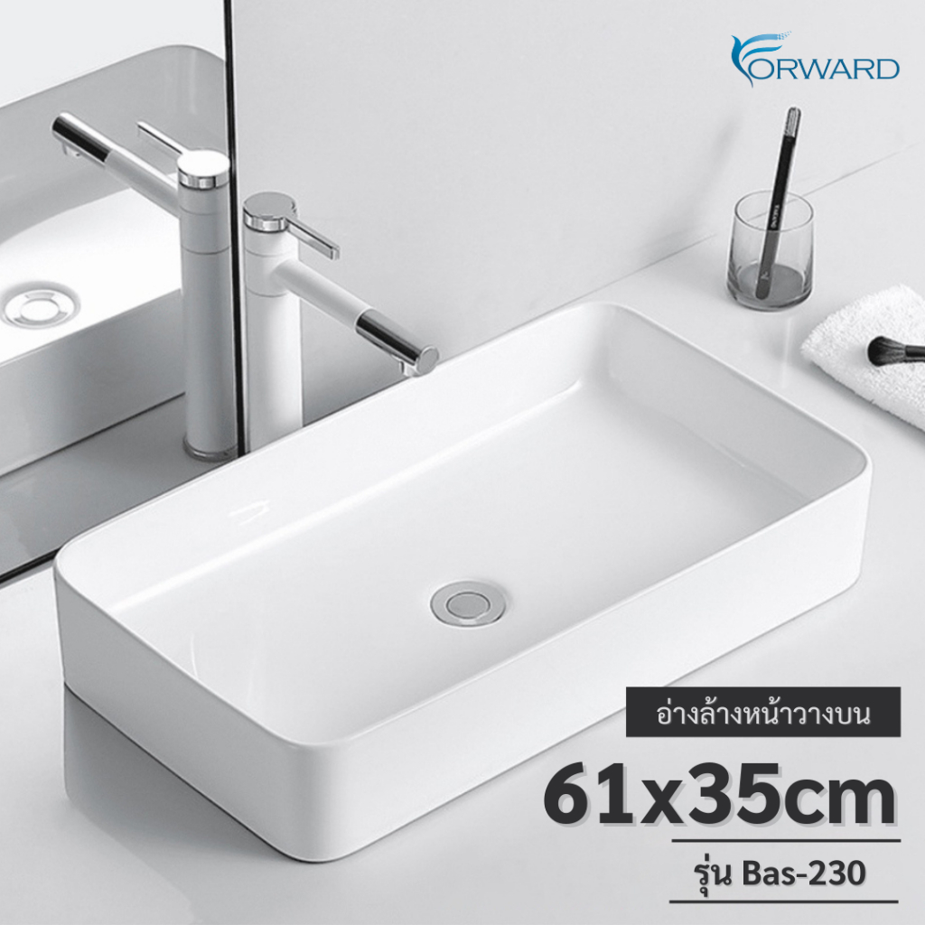 อ่างล้างหน้าชนิดวางบนเคาน์เตอร์ อ่างล้างหน้าทรงเหลี่ยม วัสดุเซรามิค สีขาว ขนาด60.5x35 ceramic wash basin รุ่น Bas-230