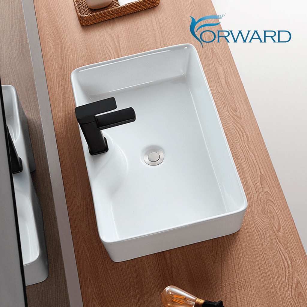 อ่างล้างหน้าชนิดวางบนเคาน์เตอร์ อ่างล้างหน้าทรงเหลี่ยม สี่เหลี่ยม สีขาว ขนาด48x37 ceramic wash basin รุ่น Bas-218