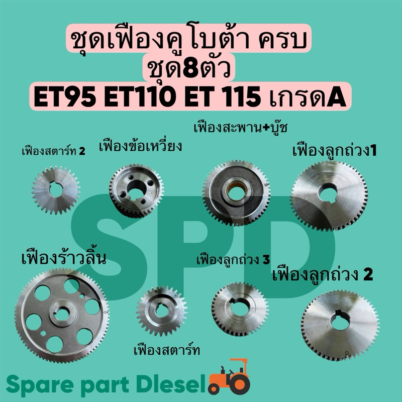 ชุดเฟืองคูโบต้า รุ่น ET 95 ET 110 ET 115. ครบชุด 8 ตัว สินค้าเกรดA รับประกันคุณภาพ