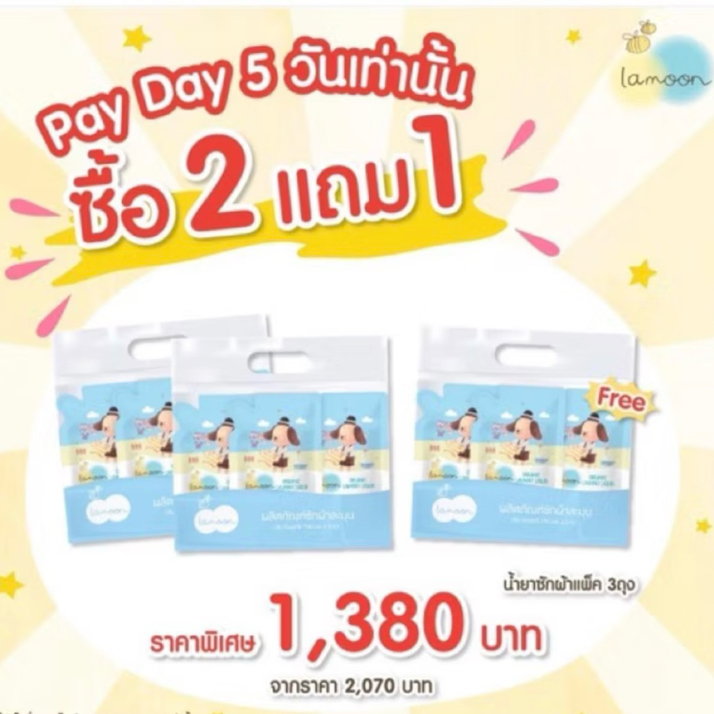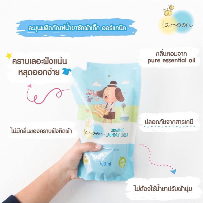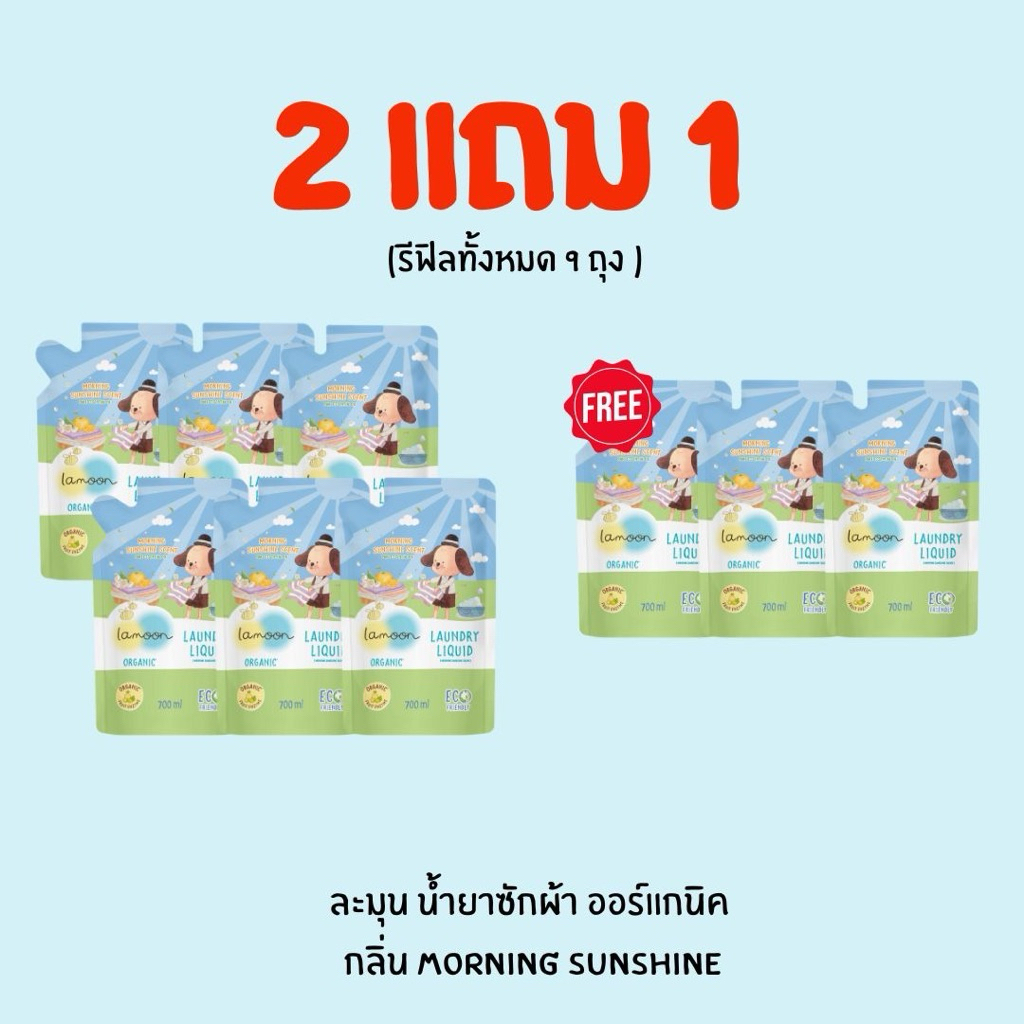 2 แถม 1 น้ำยาซักผ้าละมุน LAMOON 700 ml แพ๊ค 3 ถุง รวมได้รับ 9 ถุง