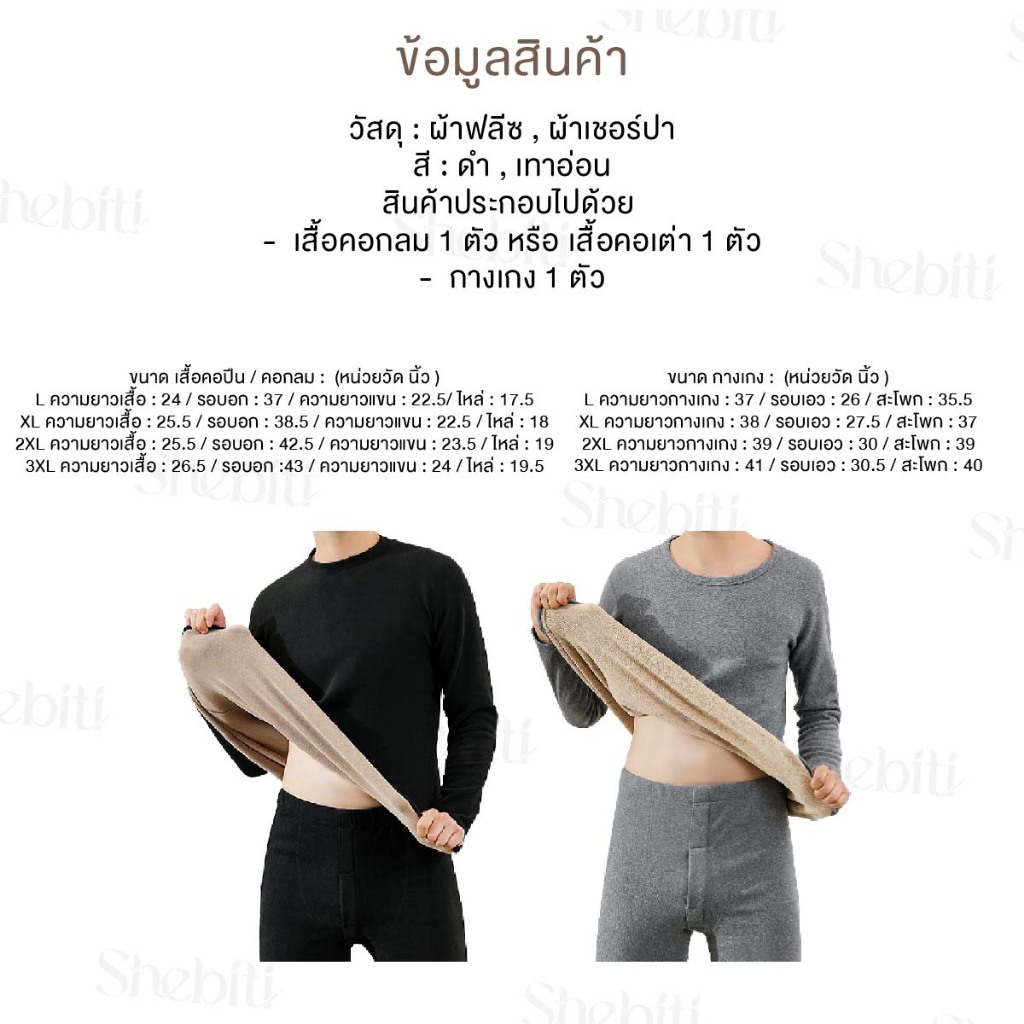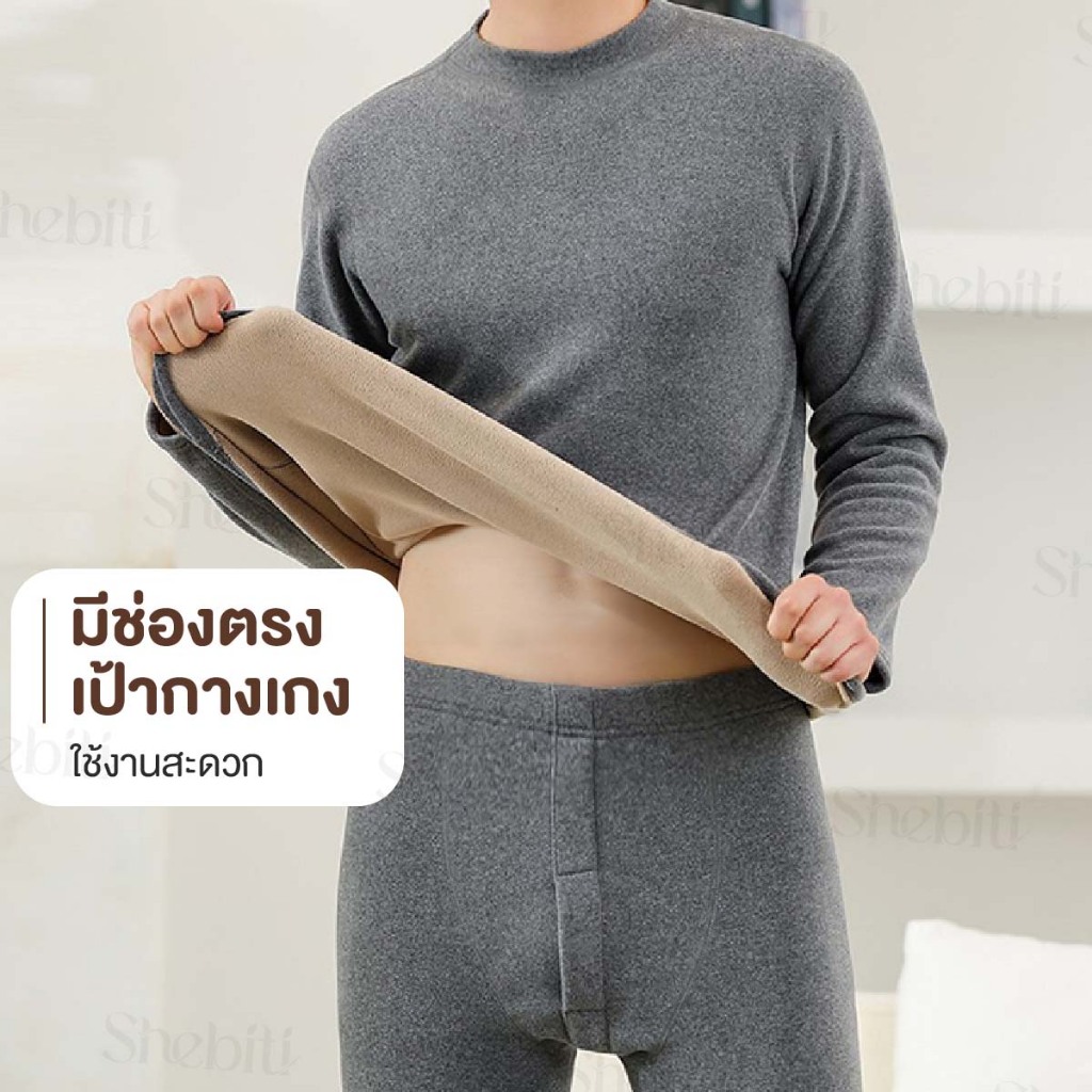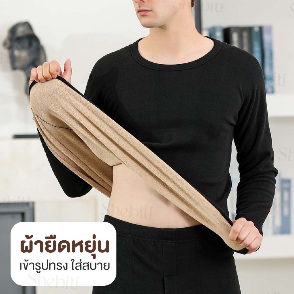 [วัดไซซ์ก่อนสั่ง][เสื้อ+กางเกง] SHEBITI LONG JOHN ลองจอน บุขน กันหนาว ผู้ชาย ฮีทเทค เสื้อแขนยาว กางเกงขายาว