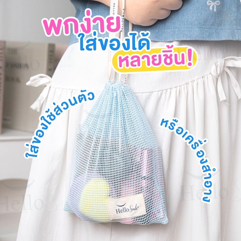 HelloSmile Cloth Bag ถุงตาข่าย ตีฟอง อเนกประสงค์ ใส่ของ เก็บของ กระเป๋า ถุงผ้า ตาข่าย พกพา ใช้ซ้ำได้