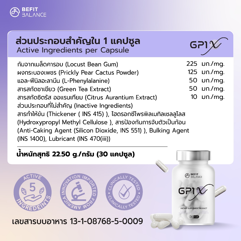 BEFITBALANCE GP1 X 30 CAPSULES ผลิตภัณฑ์เสริมอาหาร