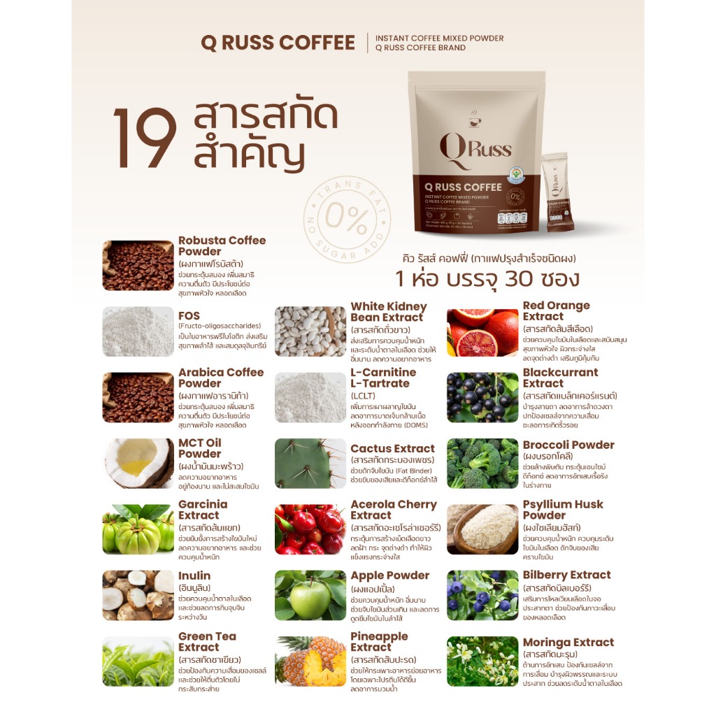 QRuss Coffee (4 ห่อ) (แถมแก้ว 1 ใบ)กาเเฟคุมหิวอิ่มนาน อร่อยกลมกล่อม เร่งระบบเผาผลาญลดการสะสมของไขมัน