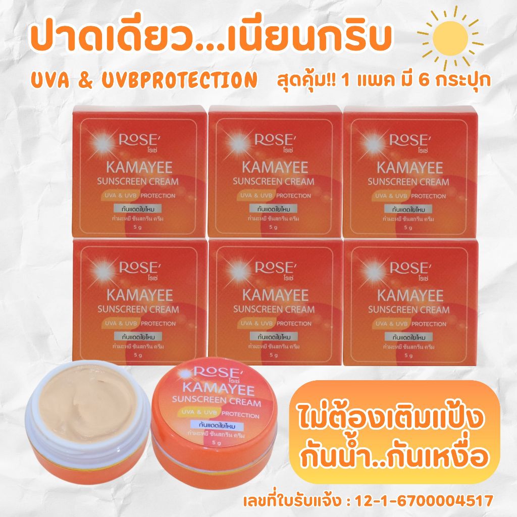 <ขายดี!!กันแดด> โรเซ่ กำมะหยี่ซันสกรีน // 5g.(1 ชิ้น) เนื้อลื่นเกลี่ยง่าย ปรับสีผิวให้สว่างทันที กันน้ำกันเหงื่อ