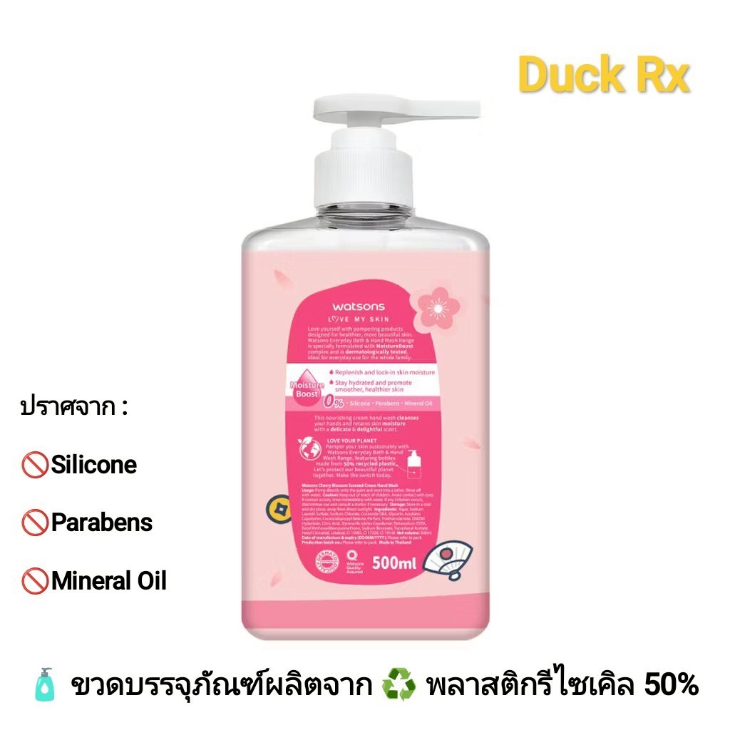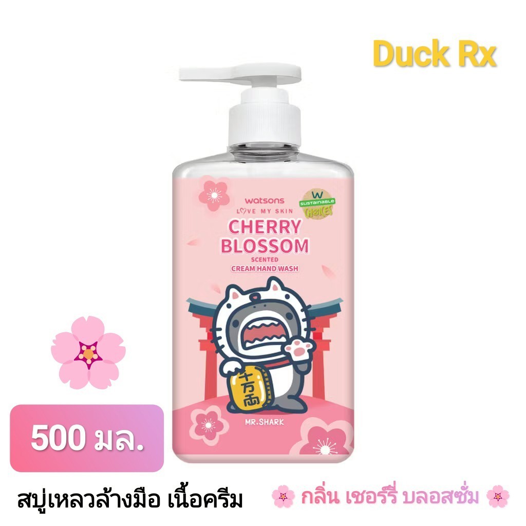 [Exp.03/2028] watsons LOVE MY SKIN CHERRY BLOSSOM scented CREAM HAND WASH 500 ml. MR.SHARK วัตสัน สบู่เหลวล้างมือ