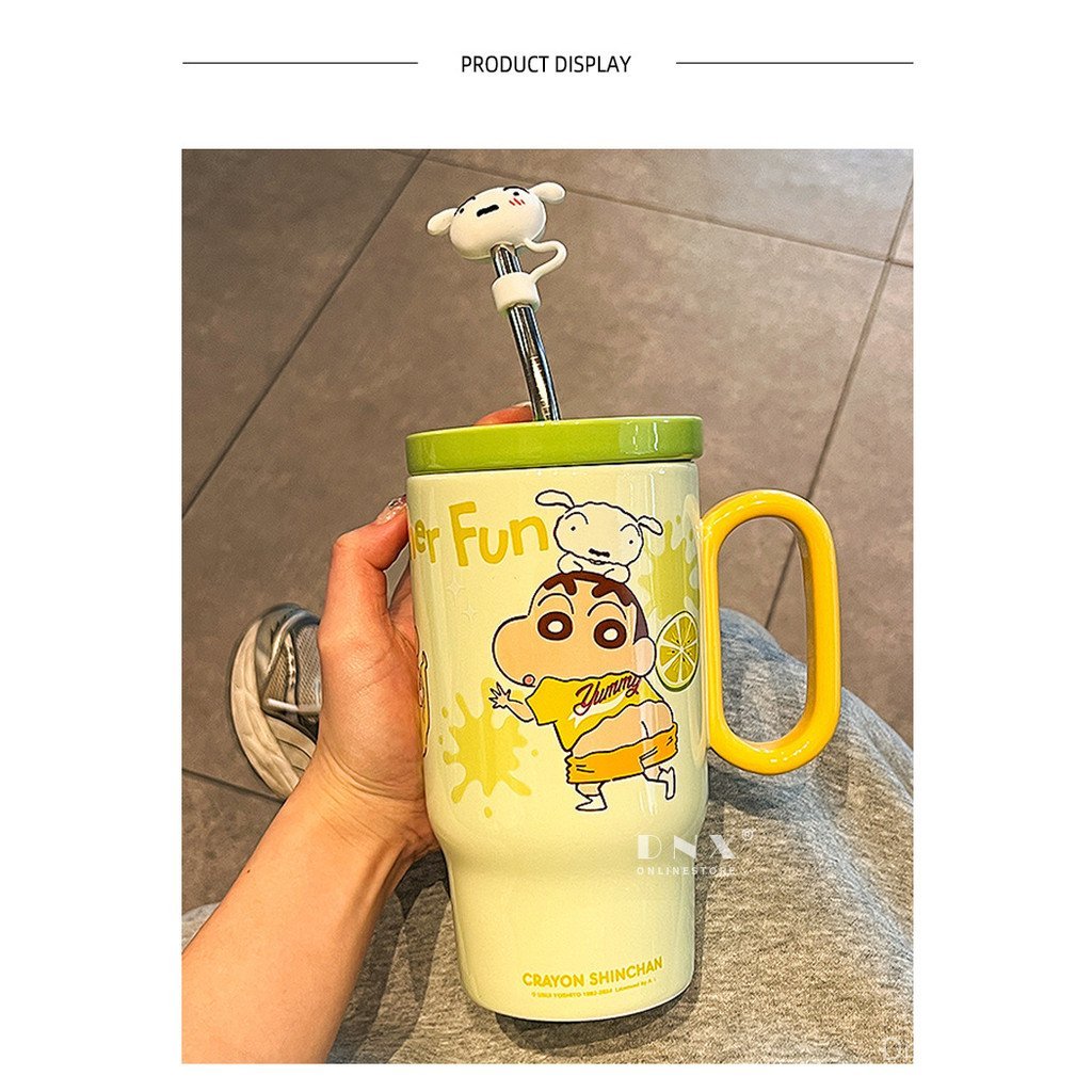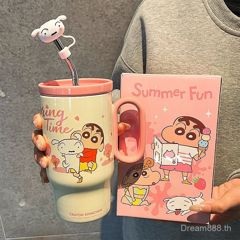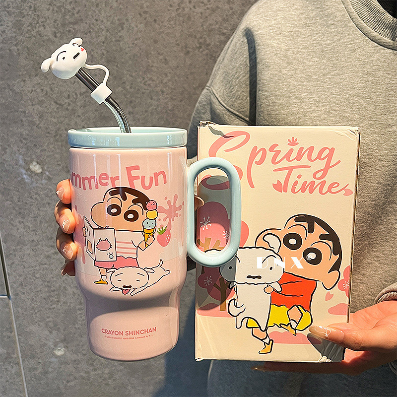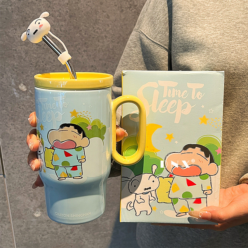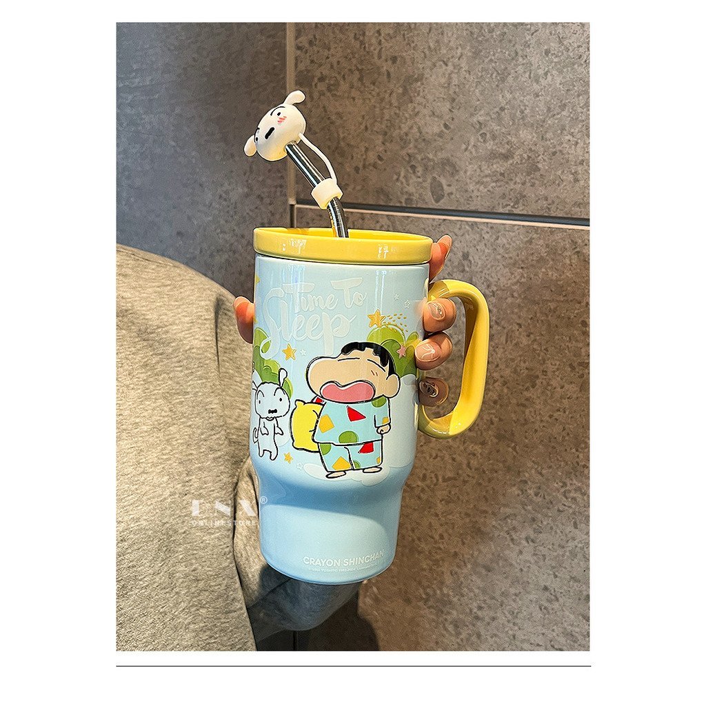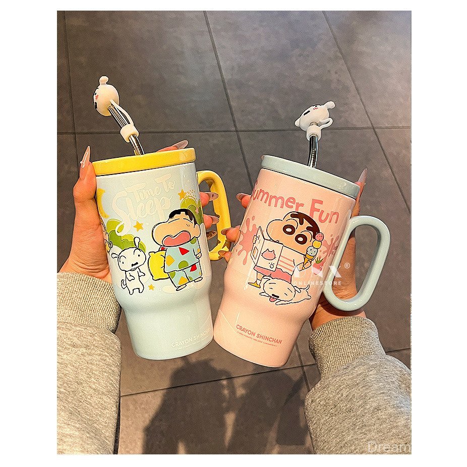 Crayon Shin-Chan Co-Branded Mug ใหม่หญิงถ้วยน้ํามูลค่าสูงถ้วยกาแฟสํานักงานเซรามิคถ้วยน้ําความจุขนาดใหญ่