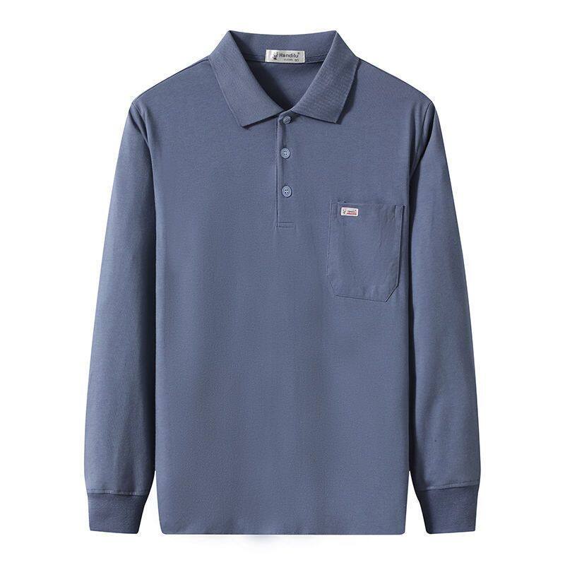 เสื้อยืดโปโลแขนยาว ผ้าฝ้าย 100% ทรงหลวม มีกระเป๋า สไตล์นักธุรกิจ แฟชั่นฤดูใบไม้ผลิ และฤดูใบไม้ร่วง สําหรับผู้ชายวัยกลางคน
