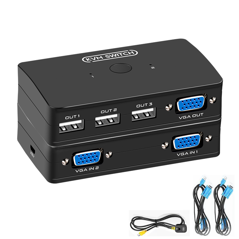 สวิตช์ VGA KVM | สวิตช์ 2 ถึง 1 4 ถึง 1 (พร้อมคอนโทรลเลอร์) 1080P VGA หน้าจอแชร์คีย์บอร์ด และเมาส์