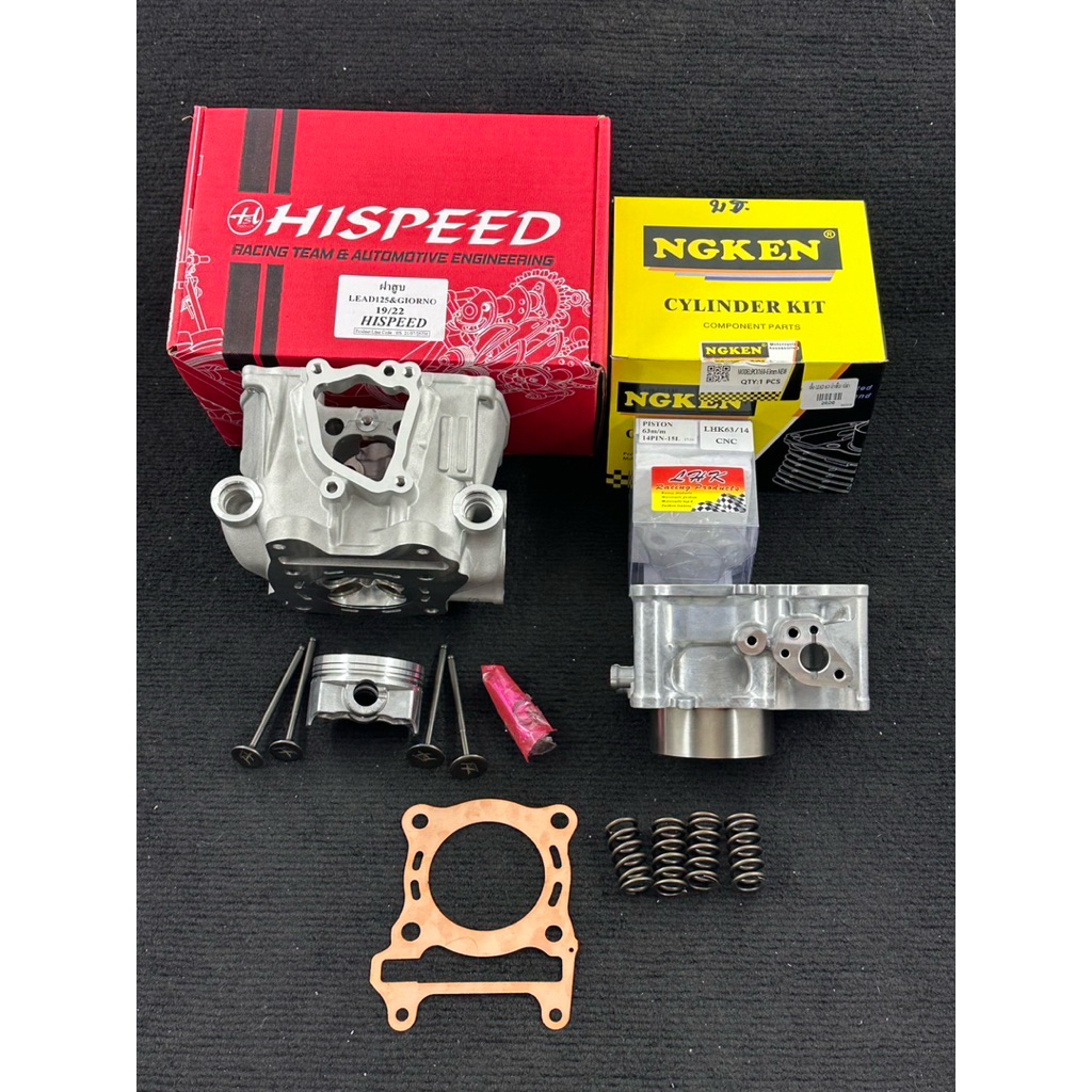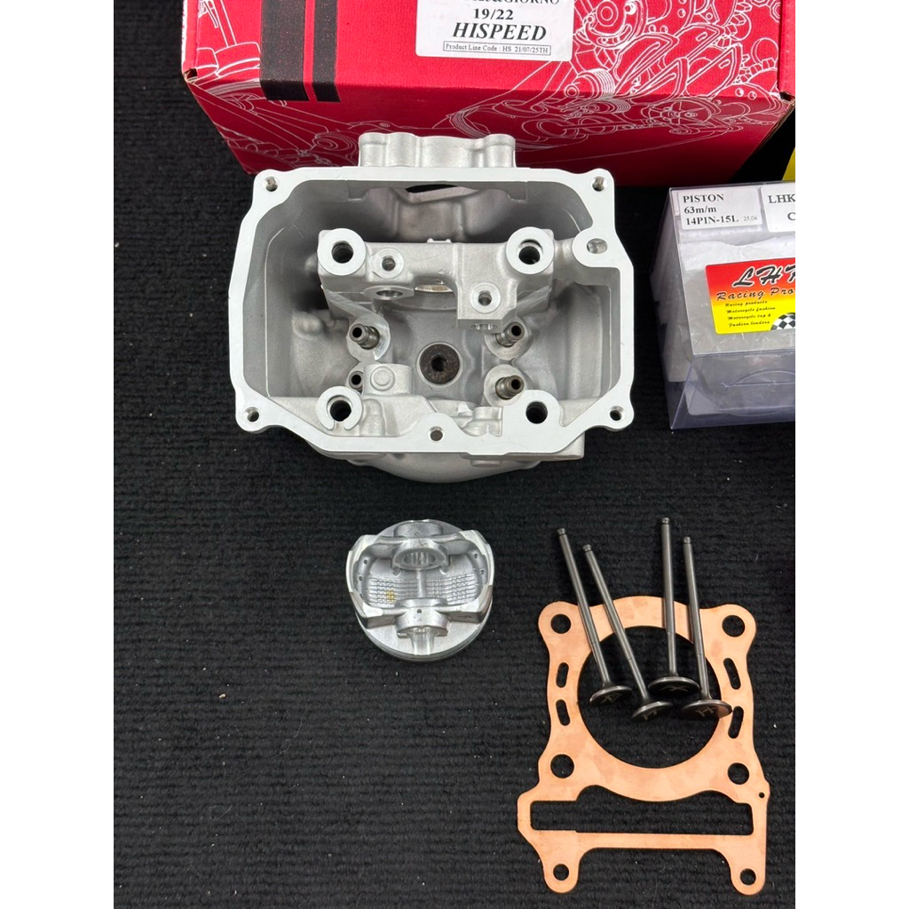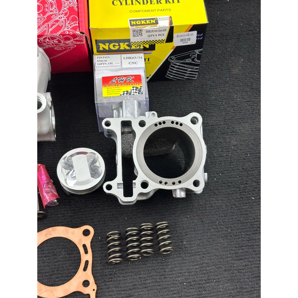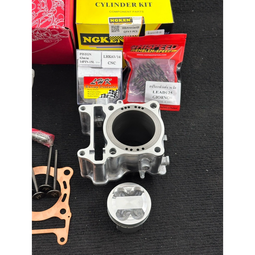 ชุดเสื้อฝาGiornoลูก63วาล์ว19-22ลูกสูบLHKสลัก14มิลพร้อมสปริงวาล์วแต่งเสื้อ63ปลอกสูบบ่าเต็มใส่LEAD-Giorno-pcx160