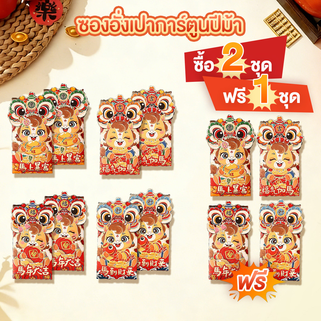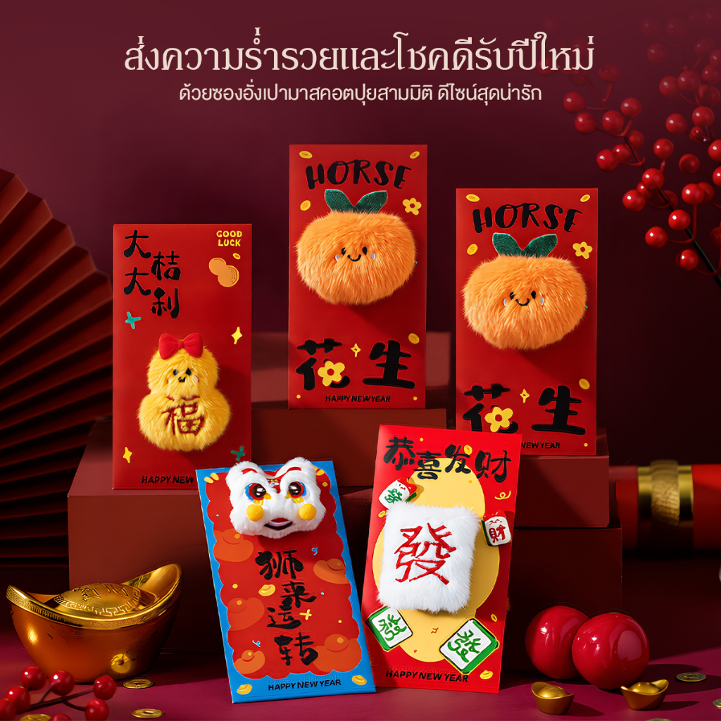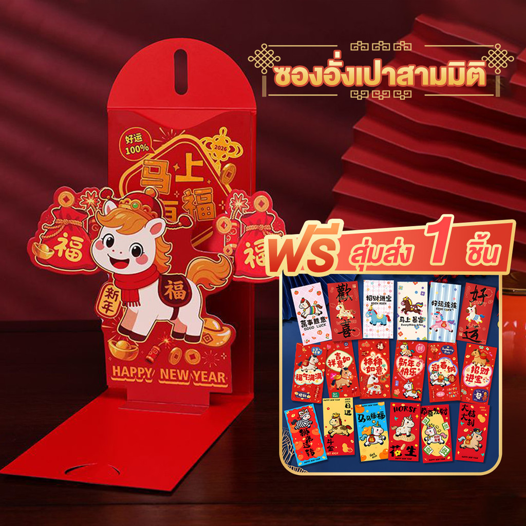 ซองแดงสำหรับปีม้า แพ็คเก็ตสีแดงสร้างสรรค์ 2026 ซองอั่งเปาแบบพับได้ 3D อั่งเปา happy new year ซองอั่งเปาลายมงคล