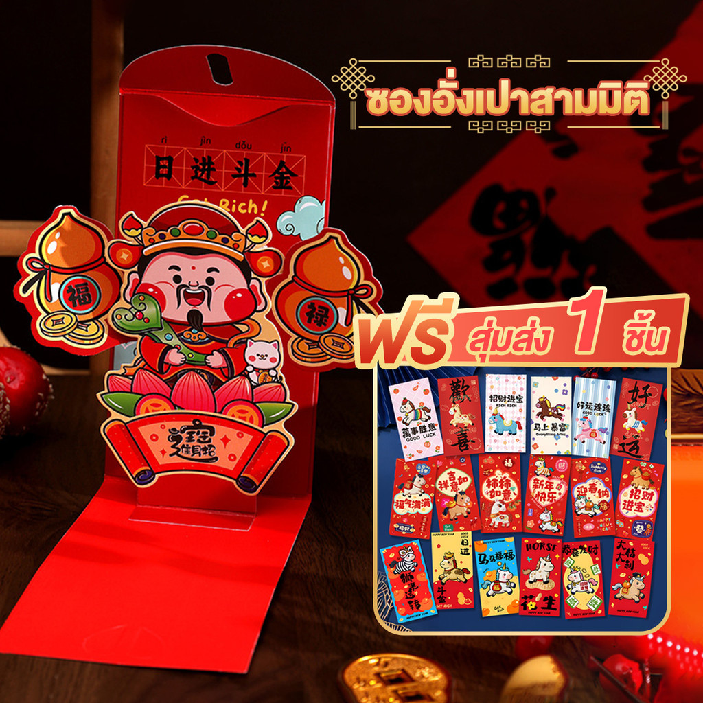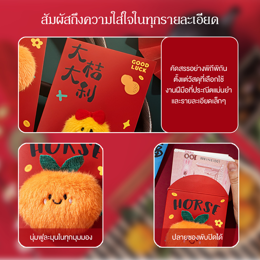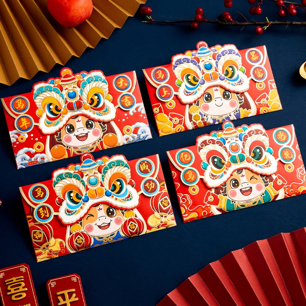 ซองแดงสำหรับปีม้า แพ็คเก็ตสีแดงสร้างสรรค์ 2026 ซองอั่งเปาแบบพับได้ 3D อั่งเปา happy new year ซองอั่งเปาลายมงคล