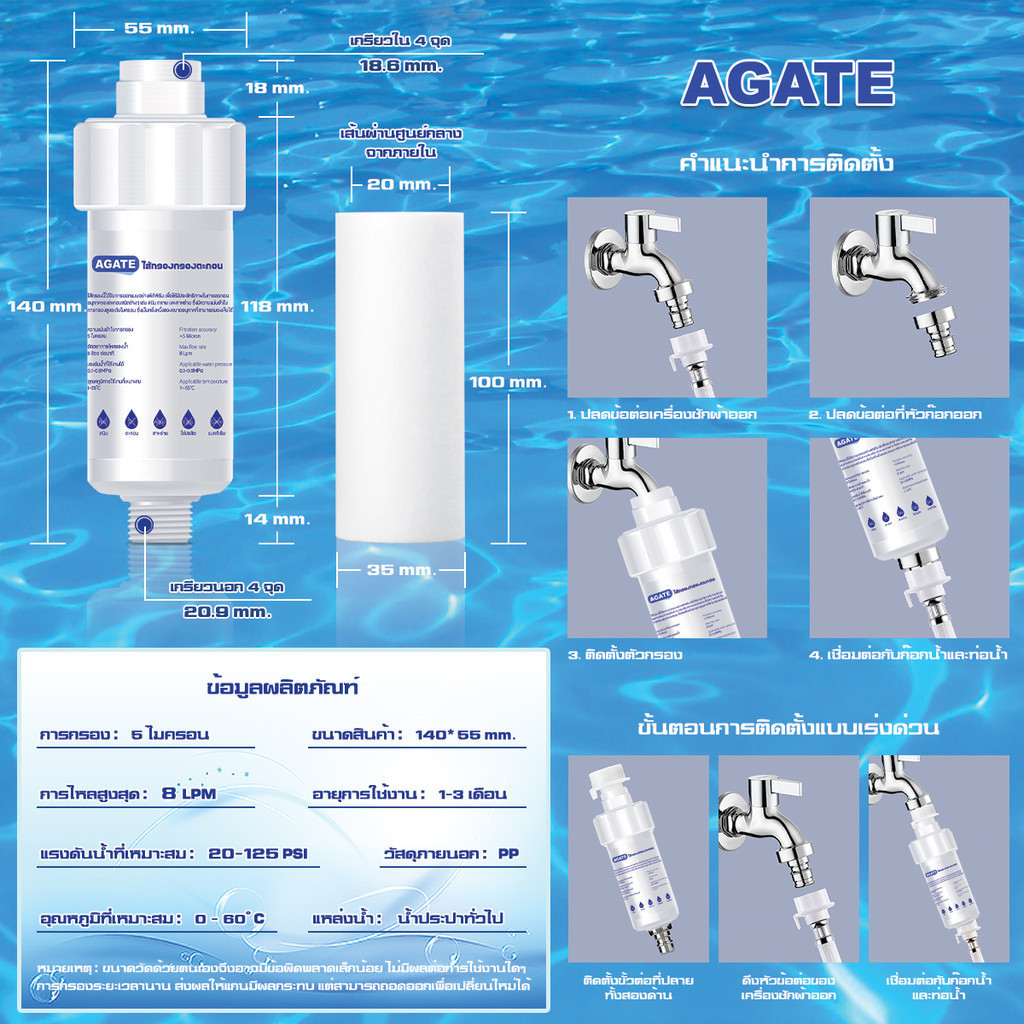 ฟิลเตอร์กรองน้ำ ถอดเปลี่ยนไส้กรองได้ กรองน้ำ กรองสิ่งเจือปนจากน้ำ กรองตะกอนในน้ำทำให้ได้น้ำใสบริสุทธิ์