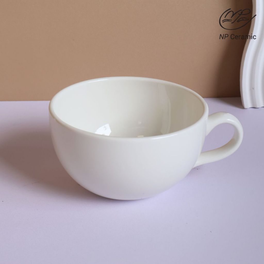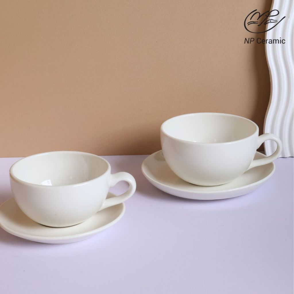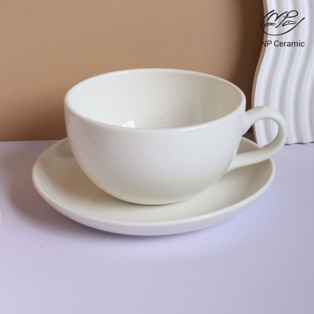 [ลดสูงสุด 80%] NP Ceramic แก้วเซรามิค แก้วจัมโบ้ จานรอง สีขาว สวยหรู พร้อมส่ง