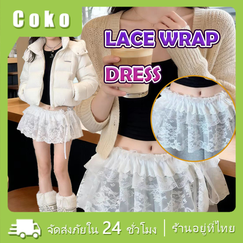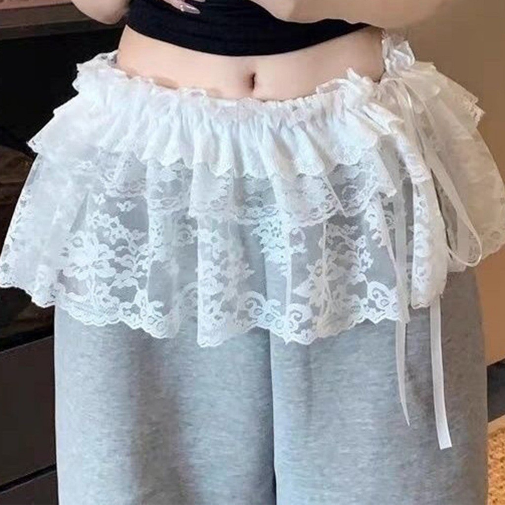 ลูกไม้มินิกระโปรงแบบซ้อน ปักดอกไม้ Y2K เสริมกางเกงยีนส์ สไตล์เกาหลี เพิ่มเลเยอร์แฟชั่นสุดเก๋