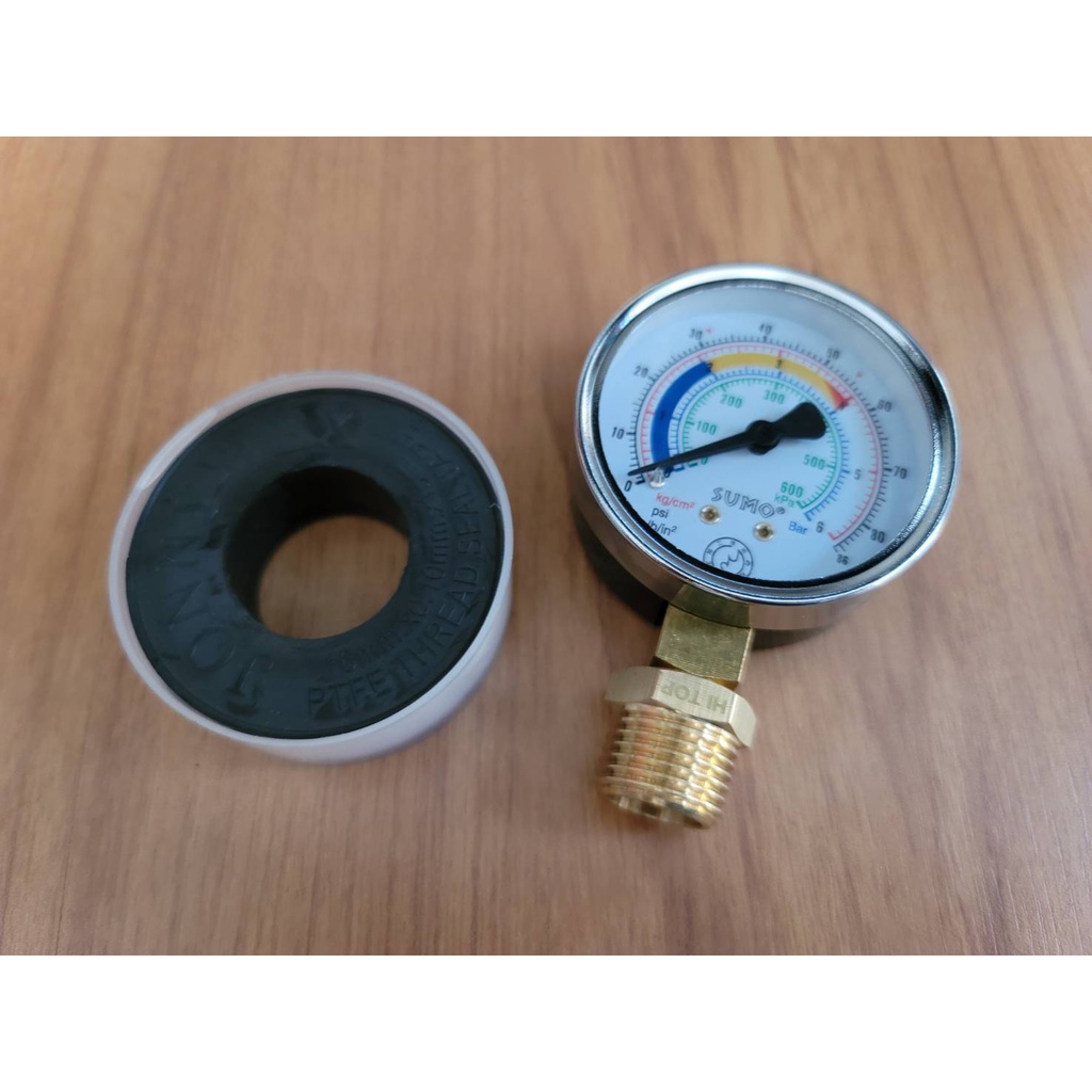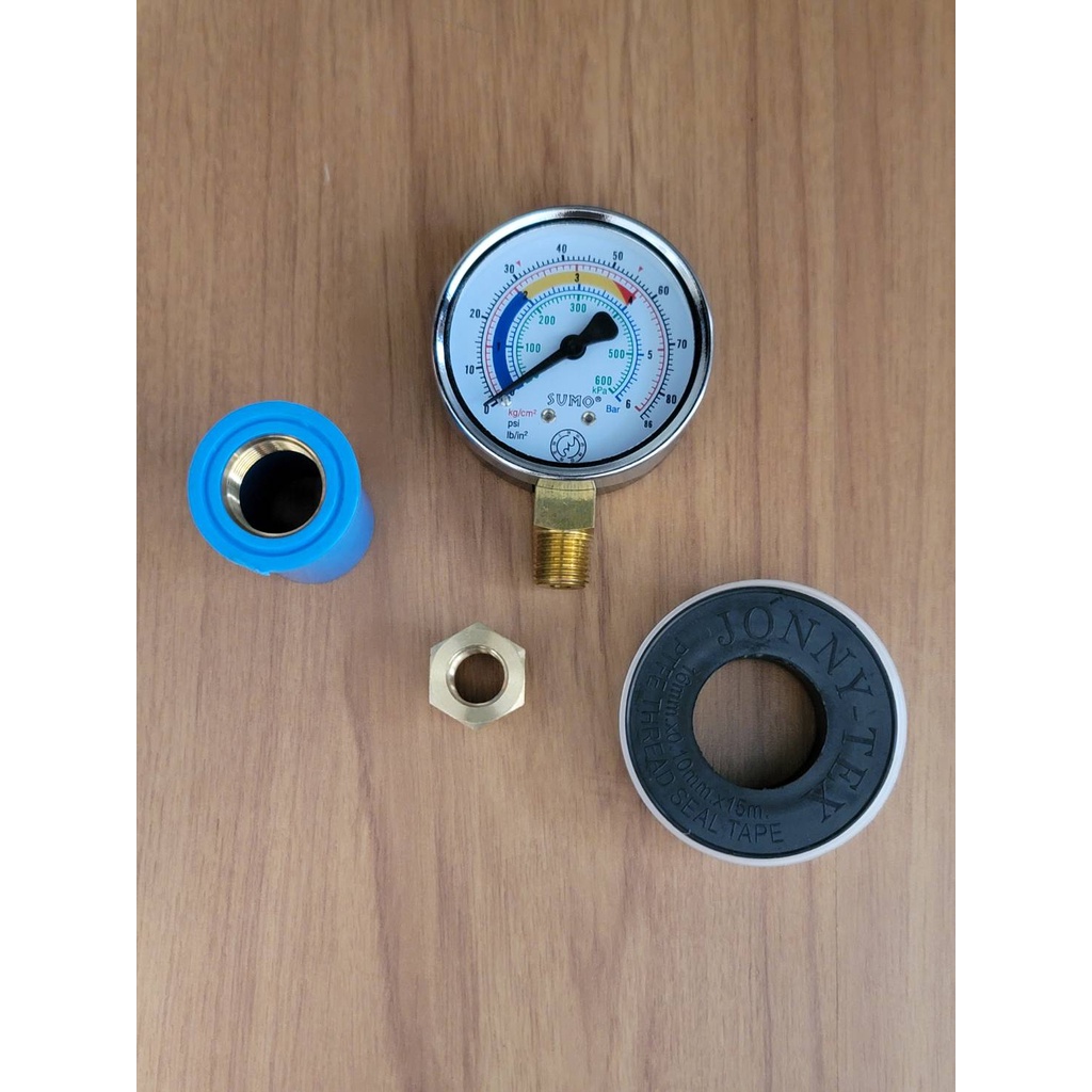 ชุดเกจวัดแรงดัน 6 บาร์ ระบบน้ำ / ปั้มน้ำ ครบชุด (เกลียวทองเหลือง) ขนาดท่อ 1/2" (4หุน)