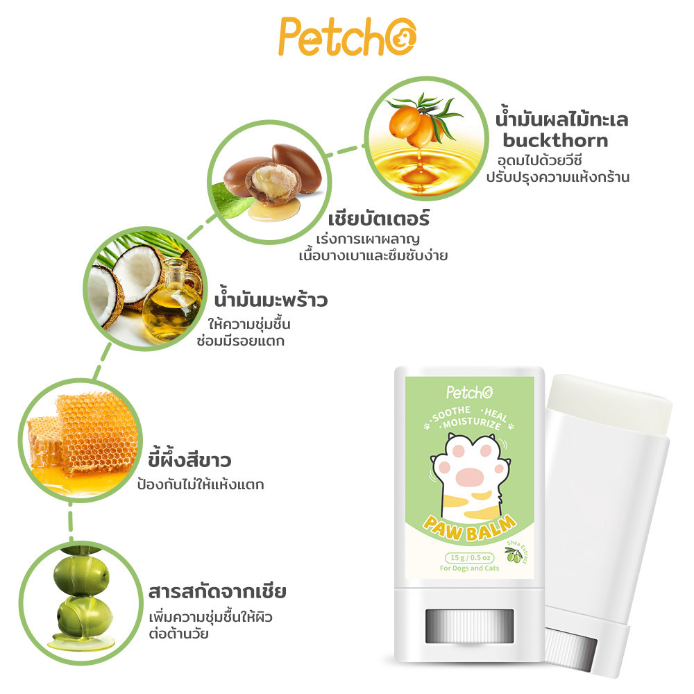 Petcho Paw Balm บาล์มทาอุ้งเท้าสัตว์เลี้ยง หรือ บริเวณที่แห้งกร้านให้ผิวนุ่ม ขนาด 15 กรัม