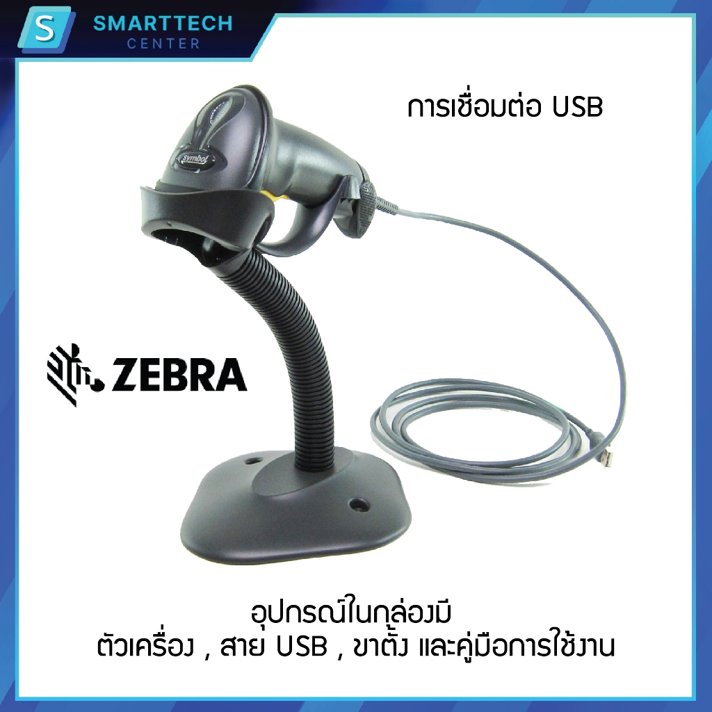 (พร้อมส่ง) Zebra รุ่น LS2208 USB เครื่องอ่านบาร์โค้ด เครื่องสแ กนบาร์โค้ด พร้อมขาตั้งอัตโนมัติ ของแท้ รับประกัน 5 ปี