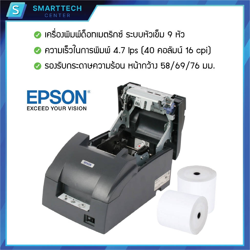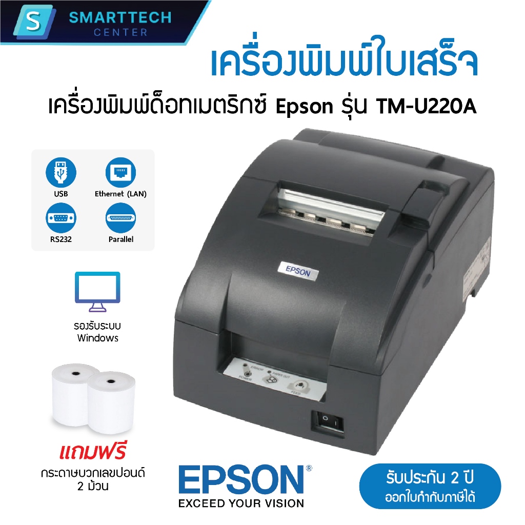 Epson TM-U220A USB , LAN เครื่องพิมพ์ใบเสร็จ แบ บหัวเข็มด็อทเมตริกซ์ แถมฟรี❗กระดาษบวกเลขปอนด์ 75x75 จำนวน 2 ม้วน