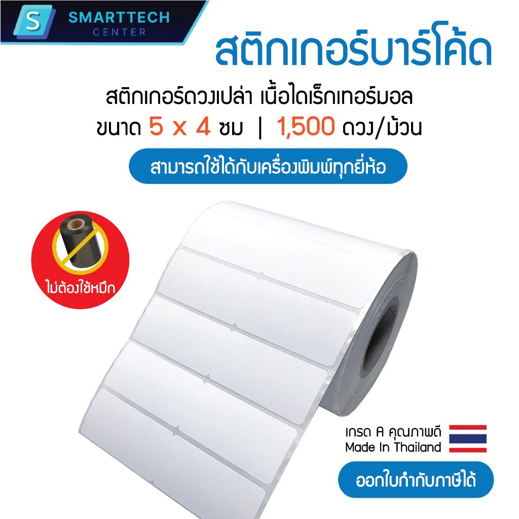 (พร้อมส่ง) Sticker Direct Thermal 5x4 cm สติกเกอร์ความร้อน เนื้อไดเร็กเทอร์มอล 1,500 ดวง/ม้วน (ไม่ต้องใช้หมึก)