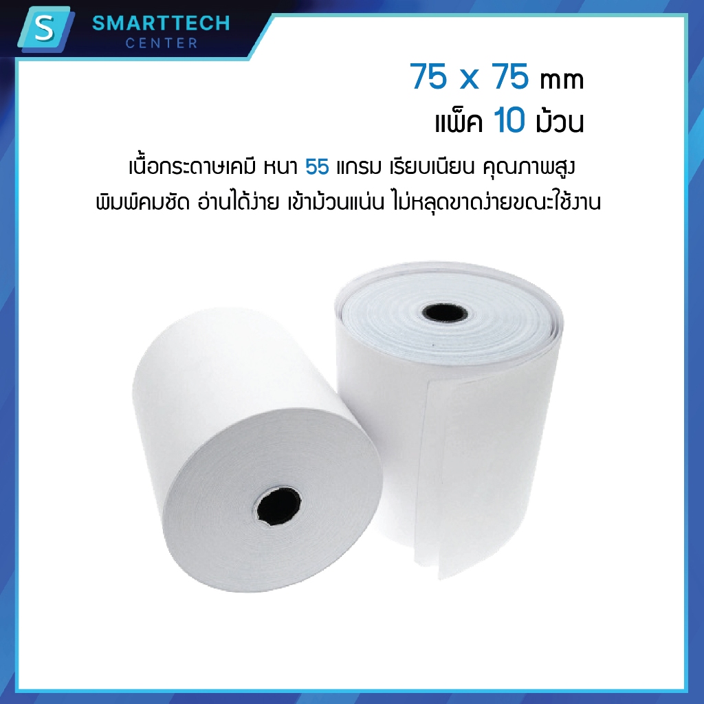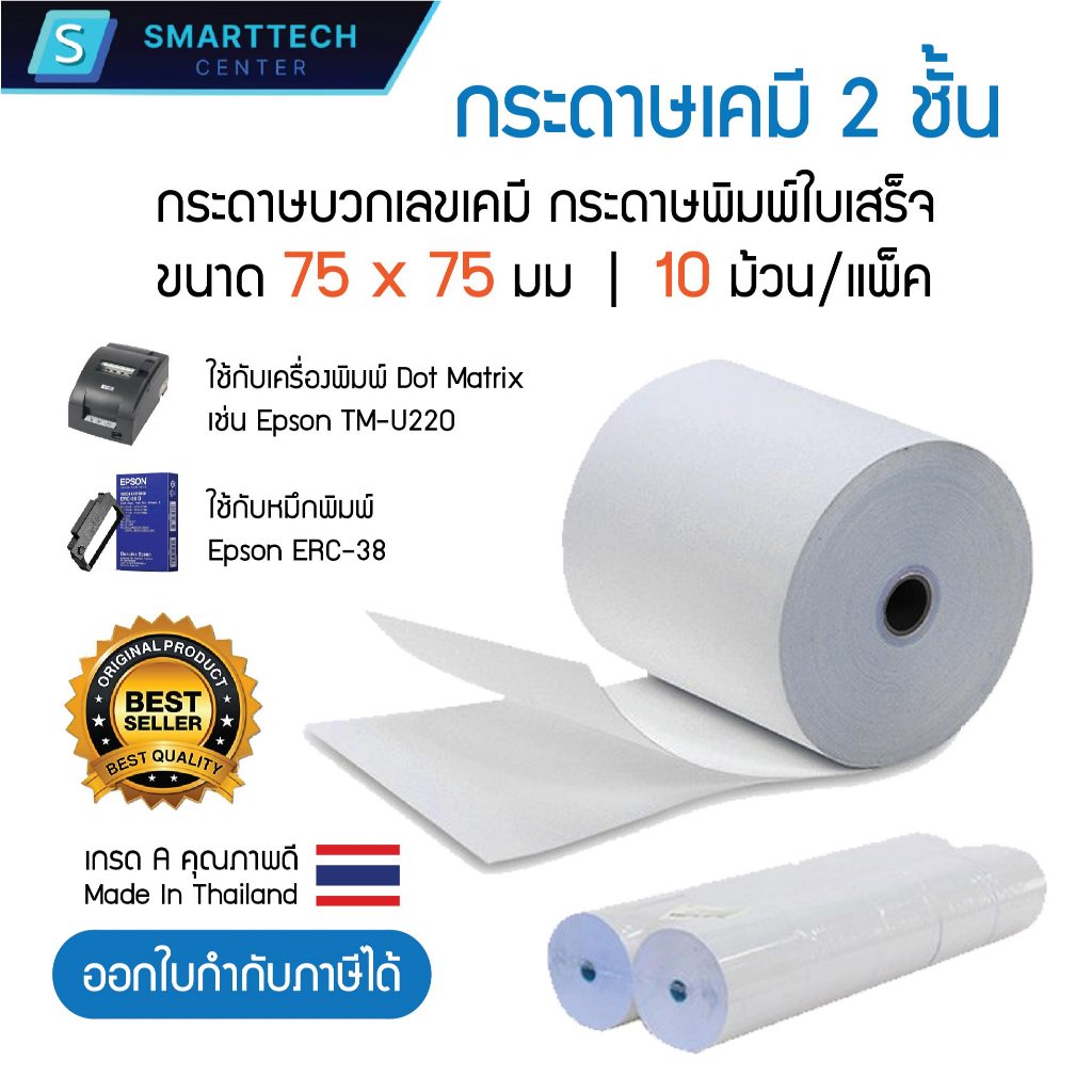 (พร้อมส่ง) กระดาษบวกเลขเคมี 2 ชั้น 75x75 มม. กระดาษใบเสร็จ แบบเก็บสำเนา สีขาว เกรด A เกรดพรีเมี่ยม (แพ็คละ 10 ม้วน)