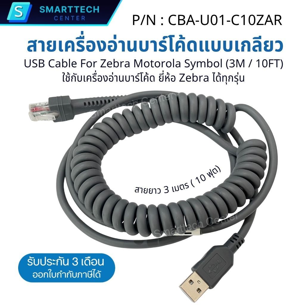 (พร้อมส่ง) สายเครื่องอ่านบาร์โค้ดแบบเกลียว USB Cable For Zebra Motorola Symbol Barcode Scanner ได้ทุกรุ่น สายยาว 3 เมตร
