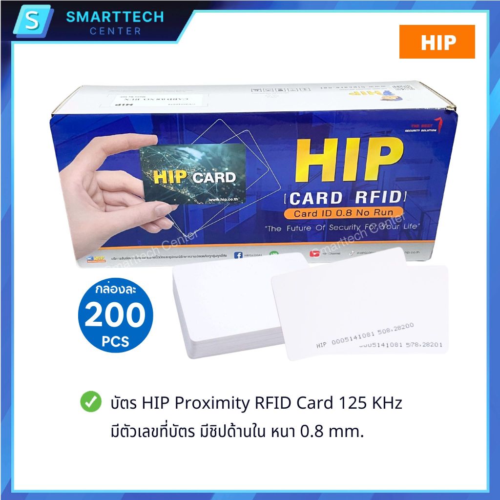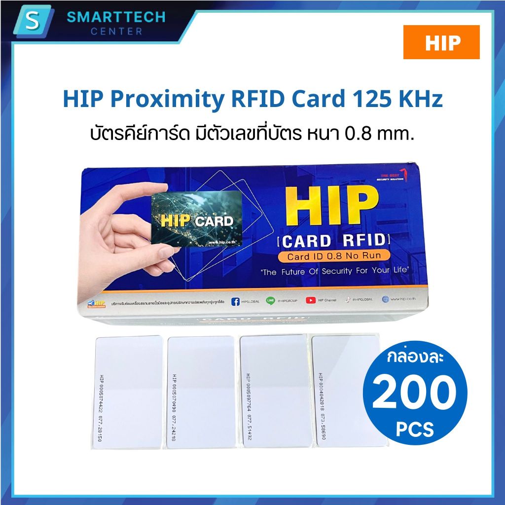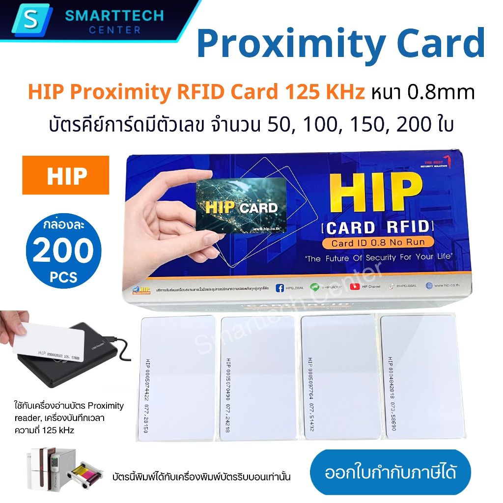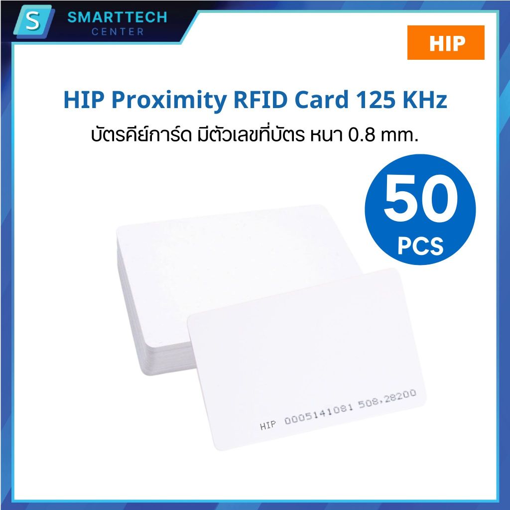 บัตร HIP Proximity RFID Card 125 KHz บัตรคีย์การ์ด EM Card หนา 0.8mm มีตัวเลขที่บัตร (เซต 50,100,150, 200 ใบ)