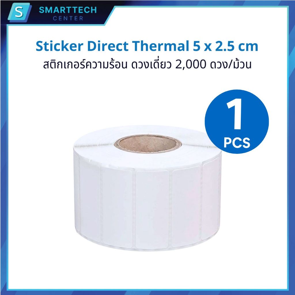 Sticker Direct Thermal 5x2.5 cm ดวงเดี่ยว 2,000 ดวง/ม้วน สติกเกอร์ความร้อนไม่ใช้หมึก เนื้อไดเร็กเทอร์มอล พิมพ์บาร์โค้ด
