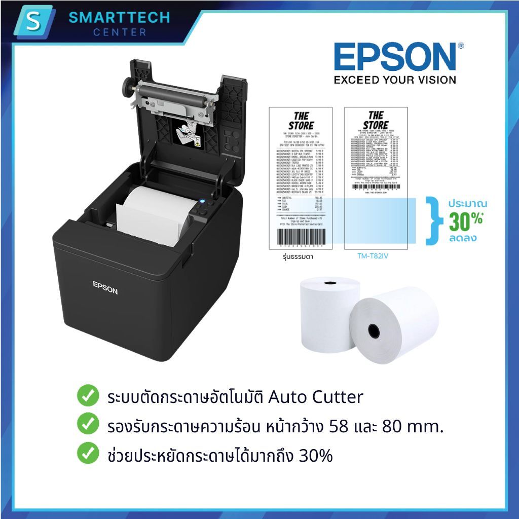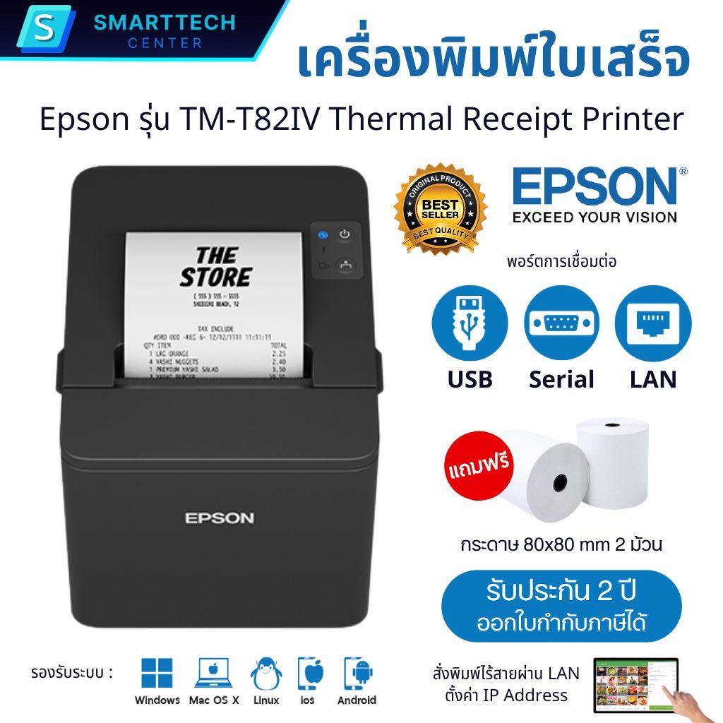 Epson รุ่น TM-T82IV พอร์ต USB+Serial+LAN เครื่องพิมพ์ใบเสร็จความร้อน ไม่ใช้หมึก ตัดกระดาษอัติโนมัติ แถมฟ รี❗กระดาษ 2 ม้วน