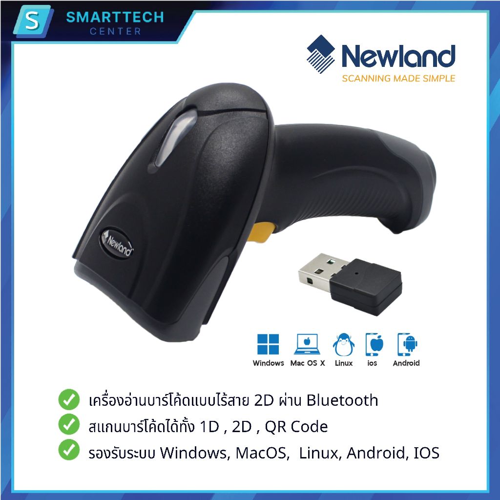(พร้อมส่ง) Newland รุ่น HR2081-BT เครื่องอ่านบาร์โค้ดไร้สาย Bluetooth Barcode Scanner 1D, 2D, QR Code