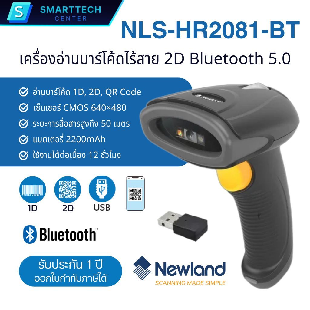 Newland รุ่น HR2081-BT เครื่องอ่านบาร์โค้ดไร้สาย Bluetooth Barcode Scanner 1D, 2D, QR Code