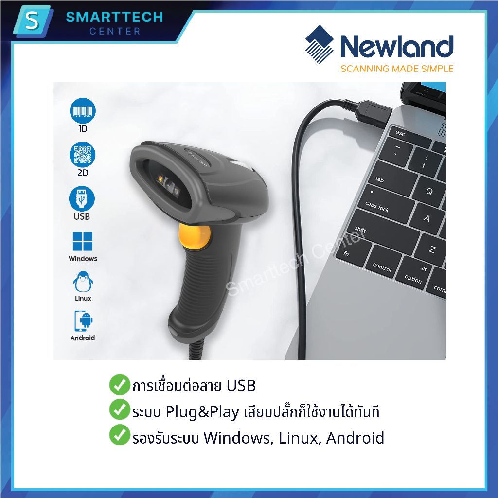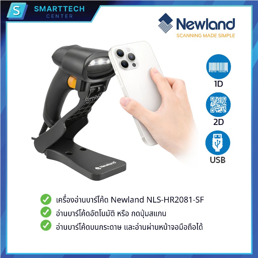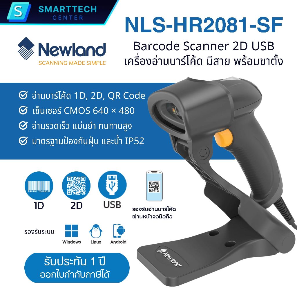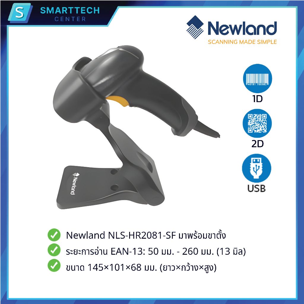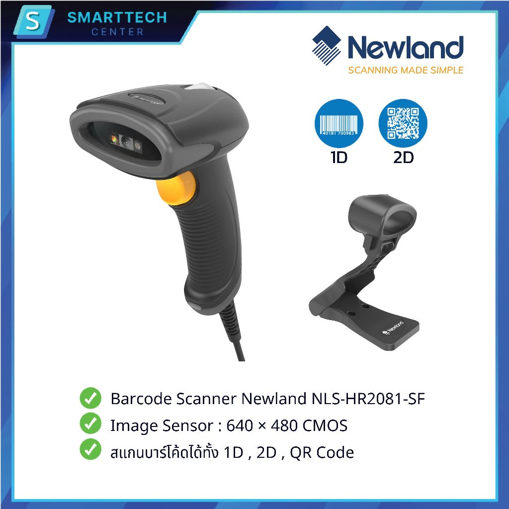 (พร้อมส่ง) Newland รุ่น NLS-HR2081-SF เครื่องอ่านบาร์โค้ด แบบมีสาย พร้อมขาตั้ง Barcode Scanner 1D, 2D, QR Code