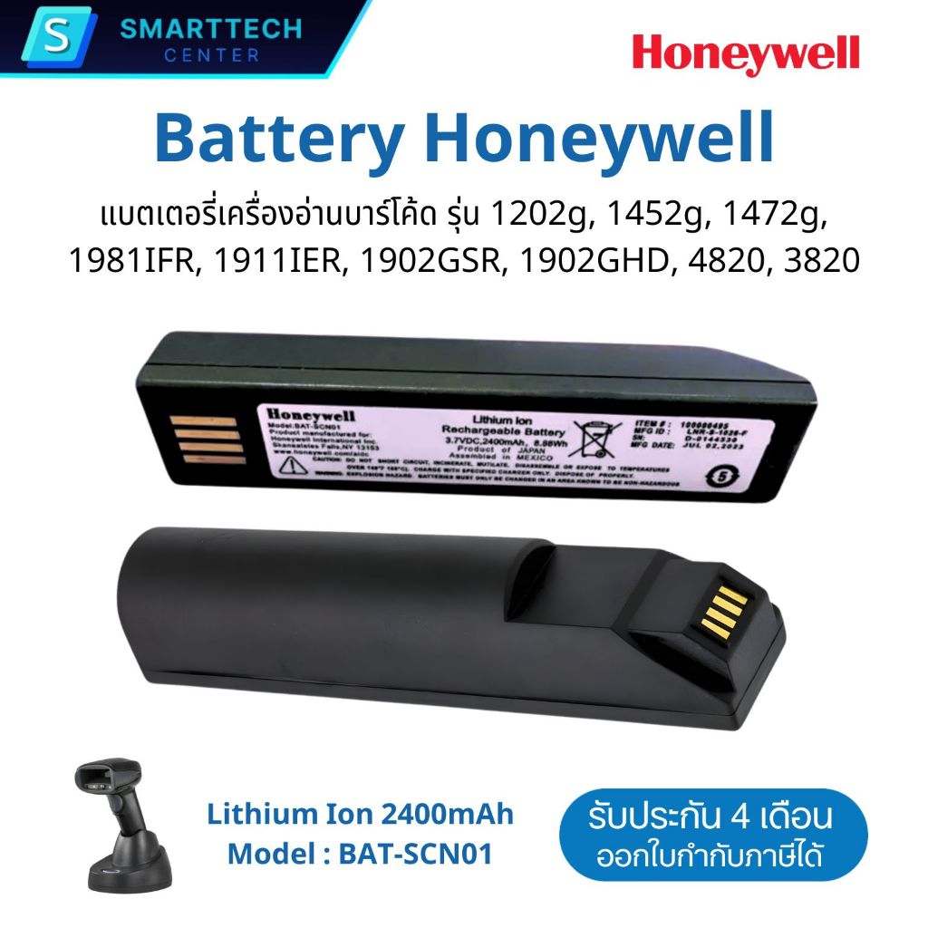 (ของแท้) Battery for Honeywell BAT-SCN01 ความจุ 2400mAh สำหรับเครื ่องอ่านบาร์โค้ด 1202G, 1452G, 1902G, 1981IFR, 1911IER