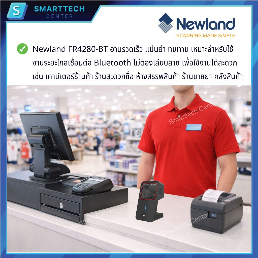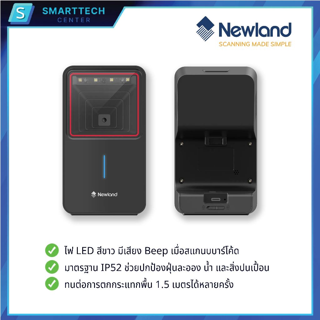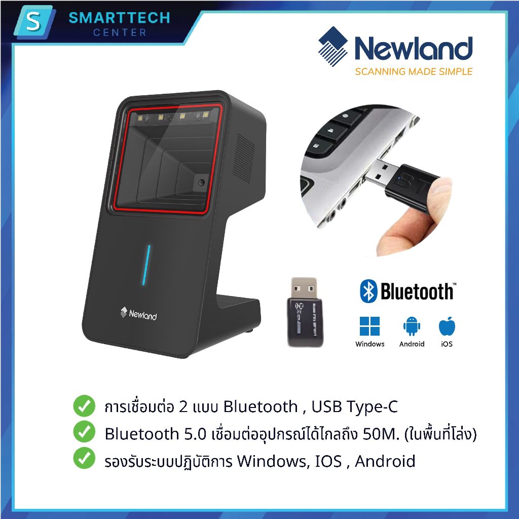 Newland รุ่น FR4280-BT เครื่องอ่านบาร์โค้ดตั้งโต๊ะไร้สาย Wireless 2D Desktop Scanner แสกนอัตโนมัติ อ่านผ่านหน้าจอมือถือ