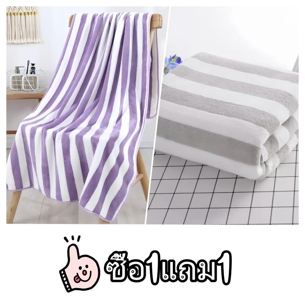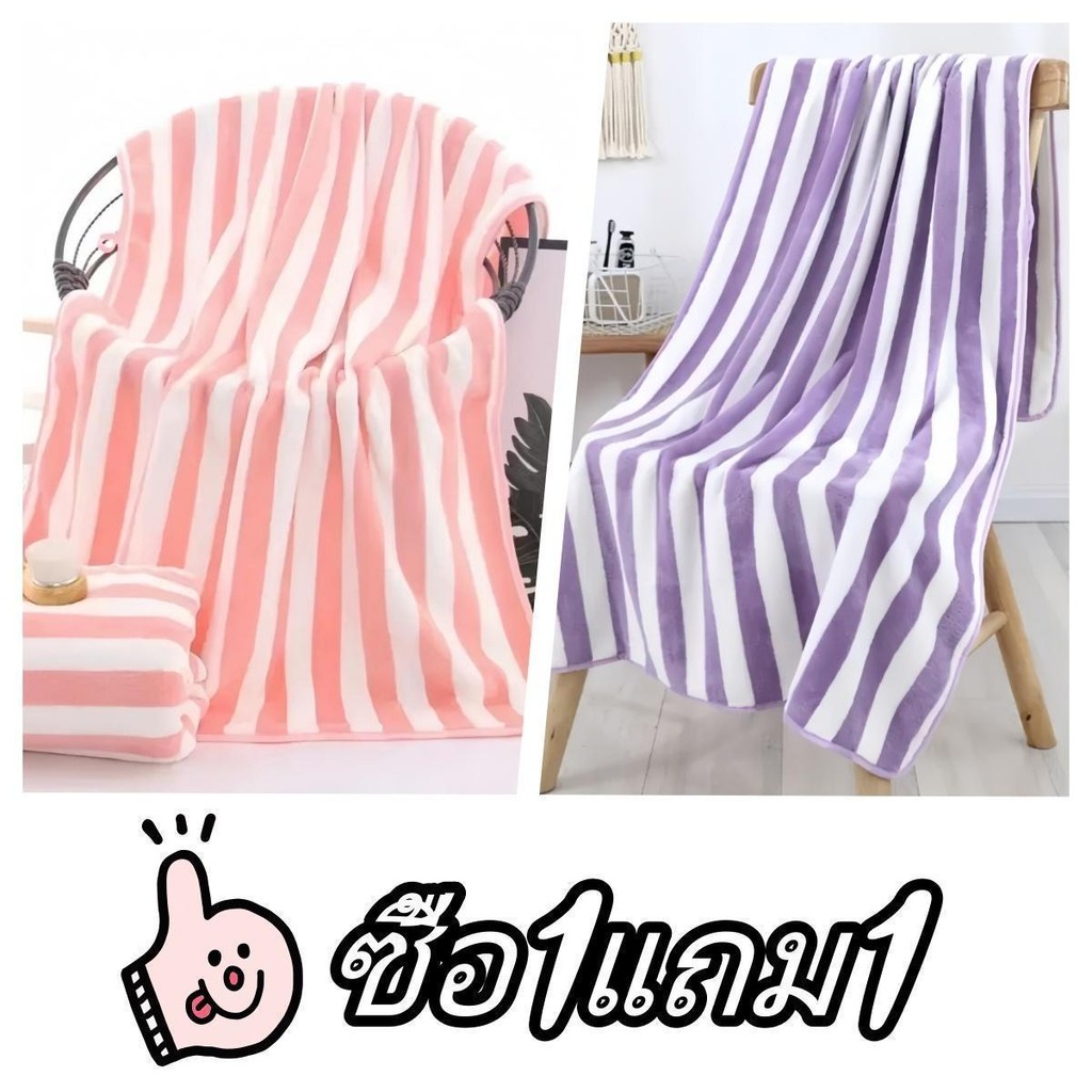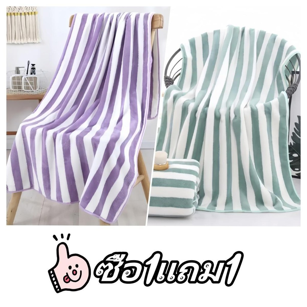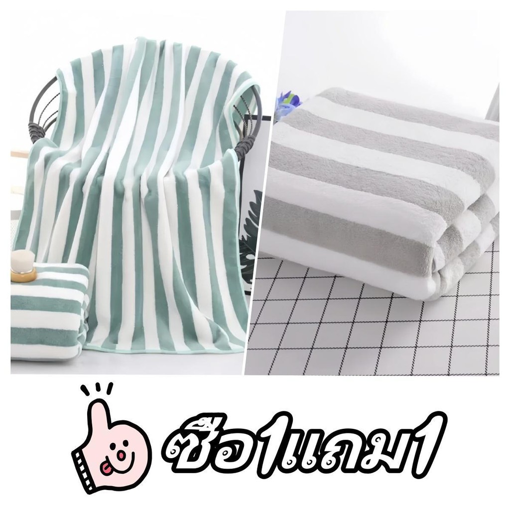 [ซื้อ 1 แถม 1] ผ้าเช็ดตัวผ้าขนหนูผ้าไมโครไฟเบอร์ผ้านุ่มดูดซับน้ำได้ดีขนาด 70 * 140 cm