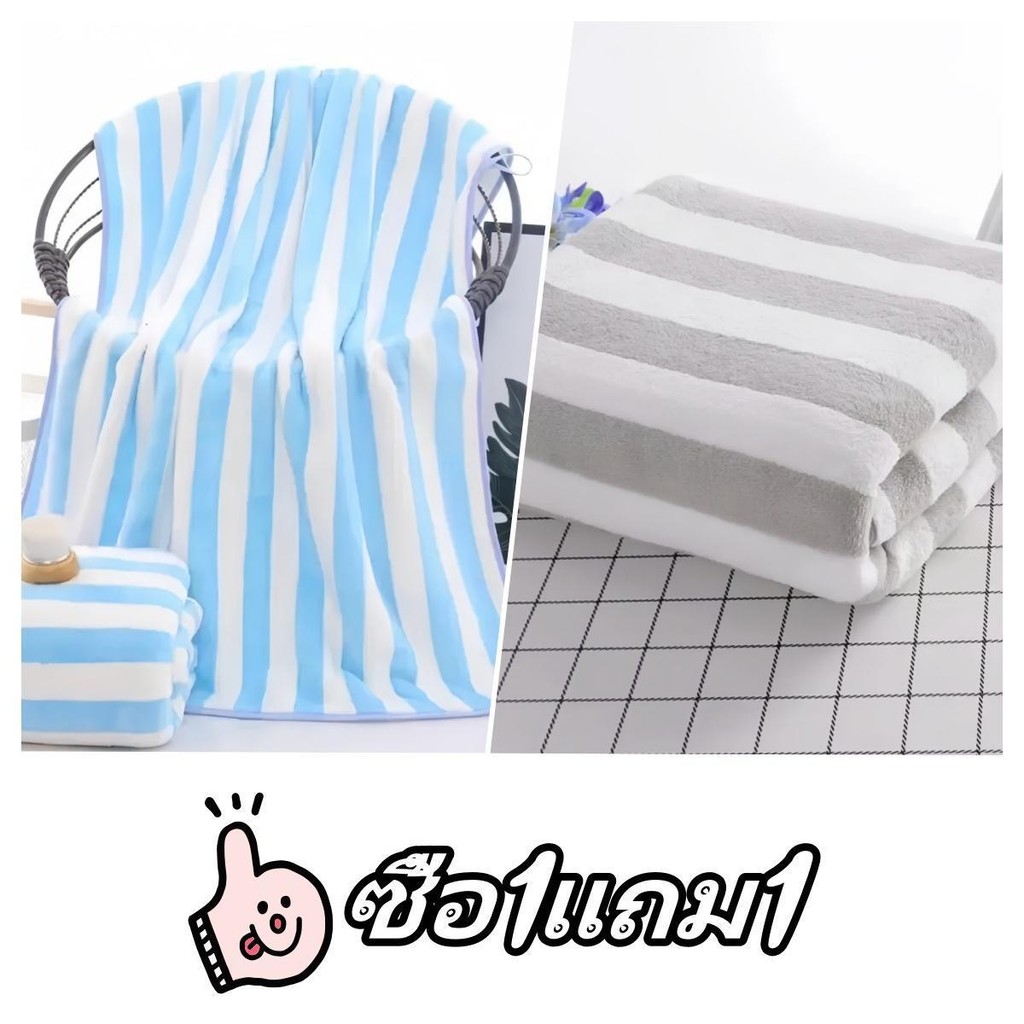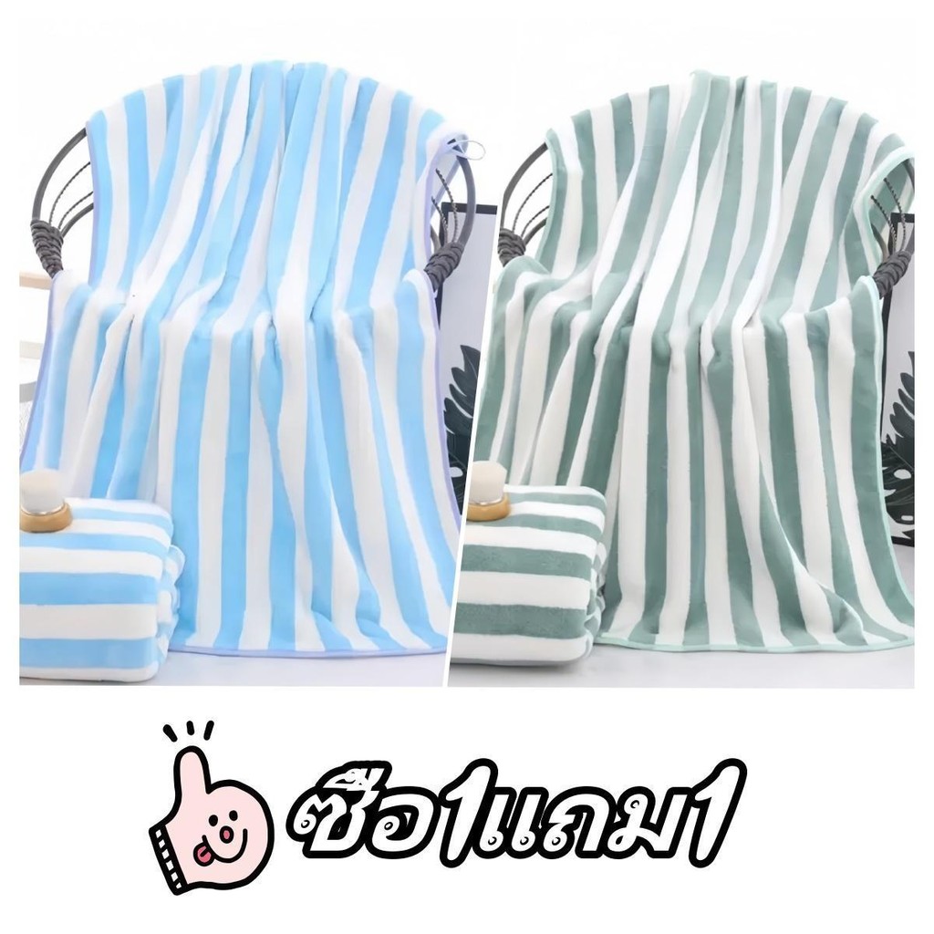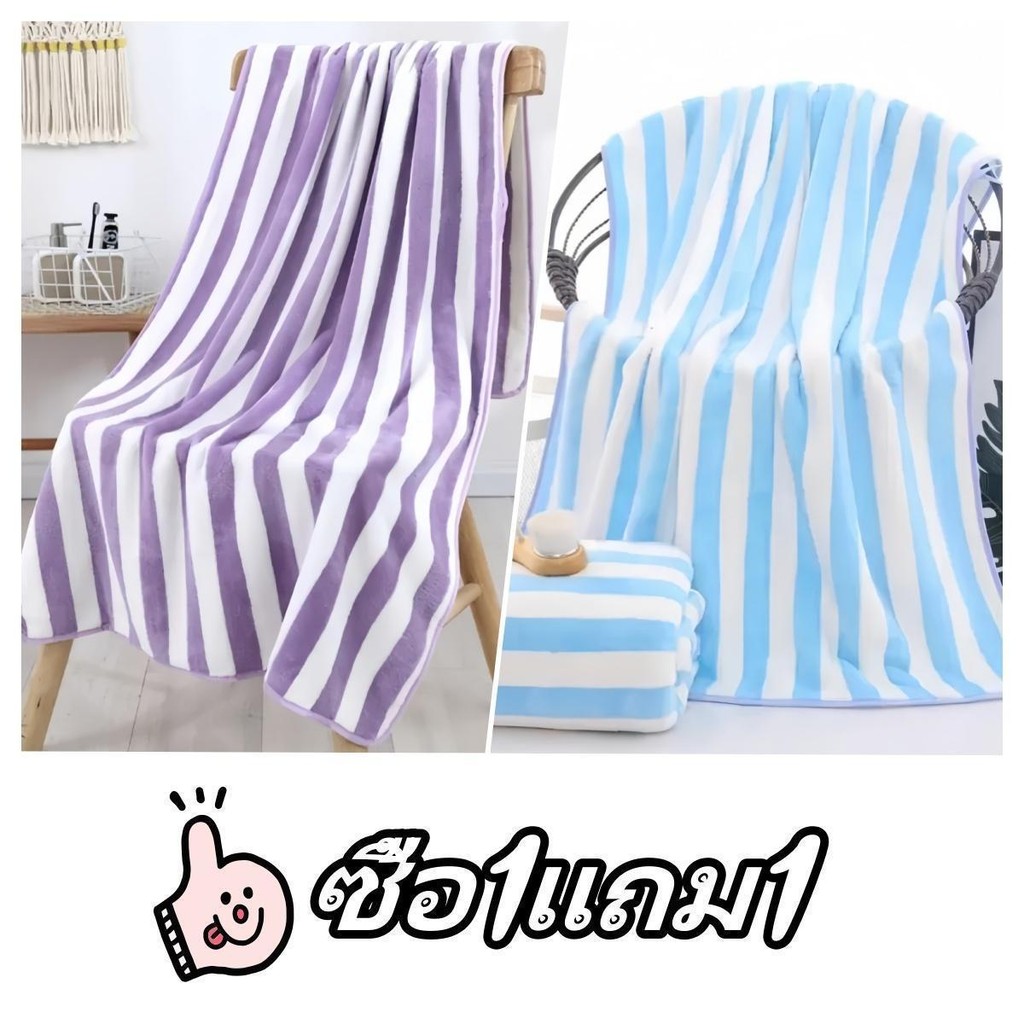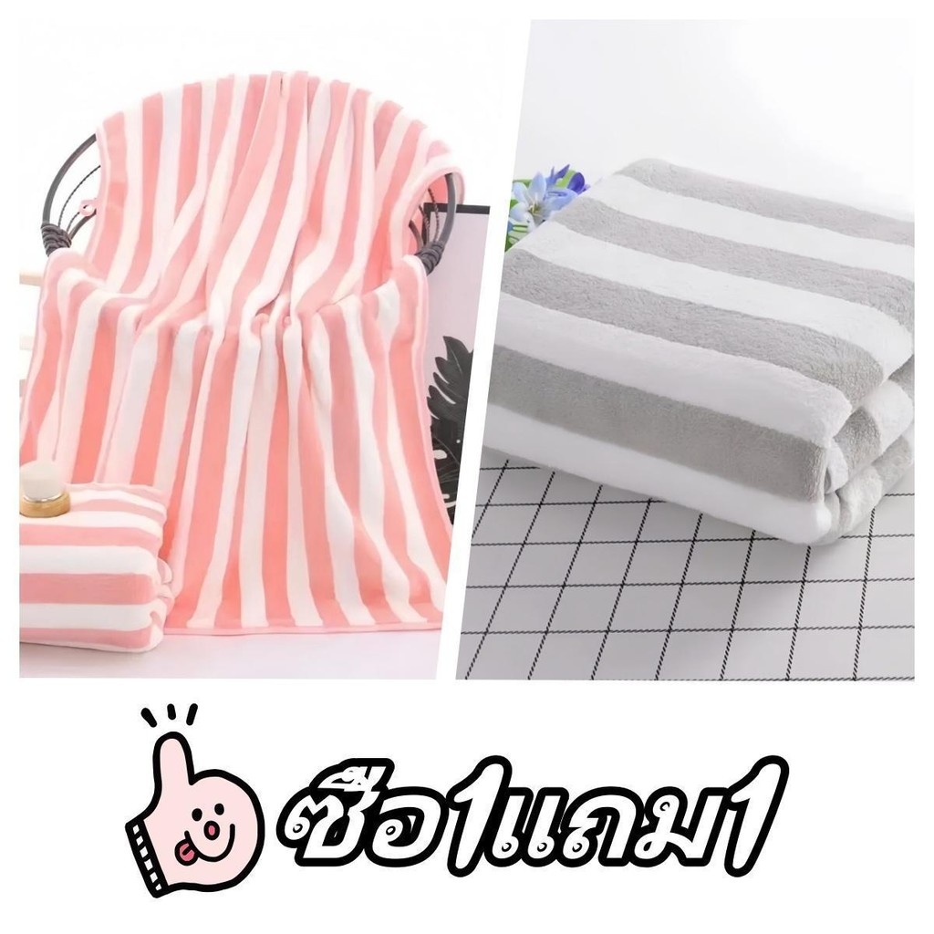 [ซื้อ 1 แถม 1] ผ้าเช็ดตัวผ้าขนหนูผ้าไมโครไฟเบอร์ผ้านุ่มดูดซับน้ำได้ดีขนาด 70 * 140 cm
