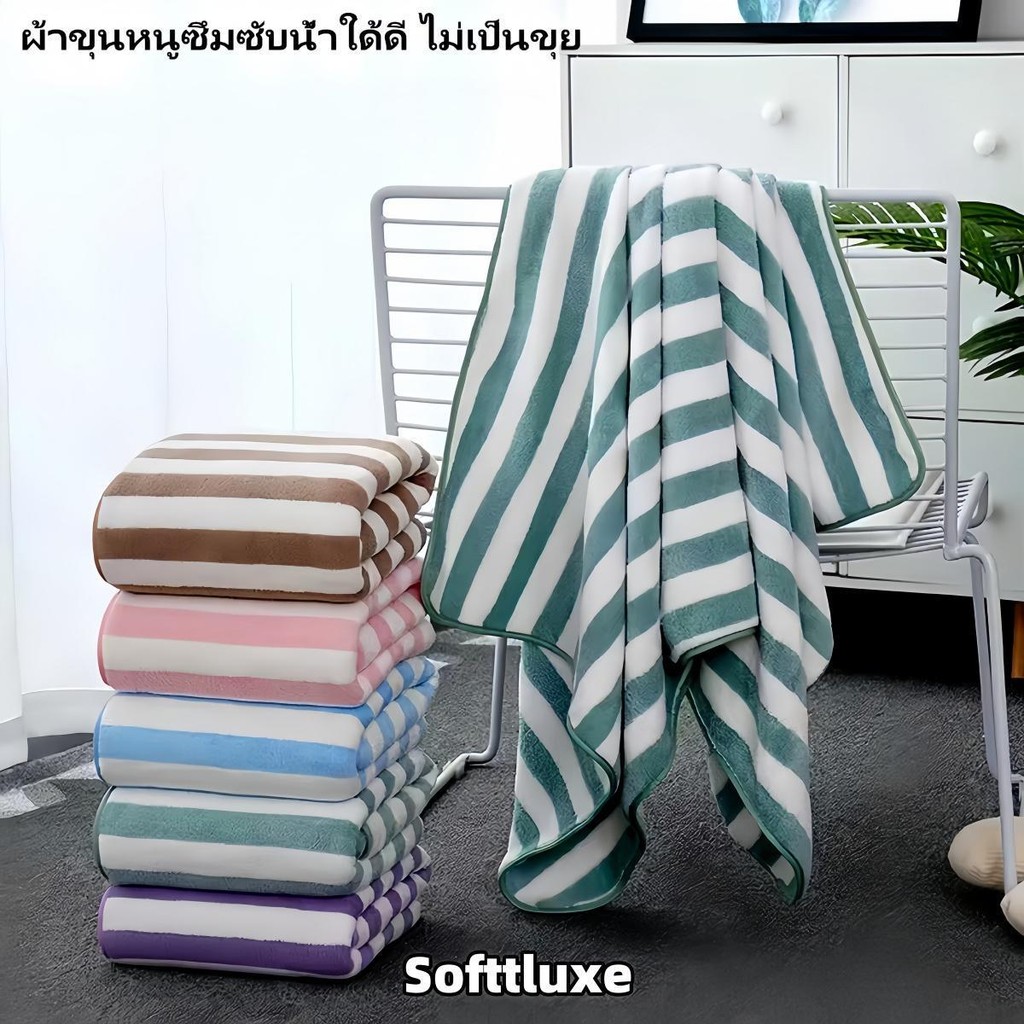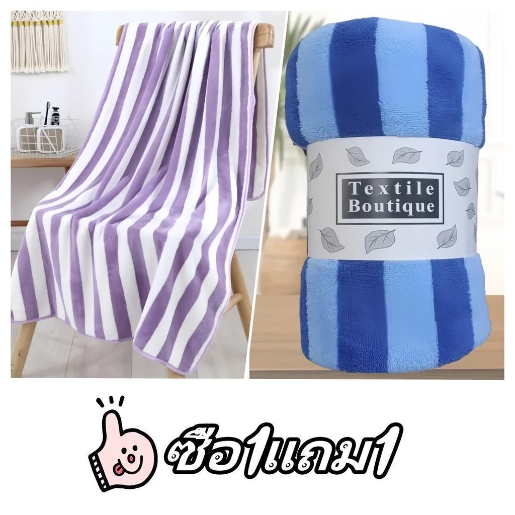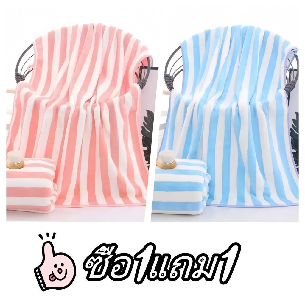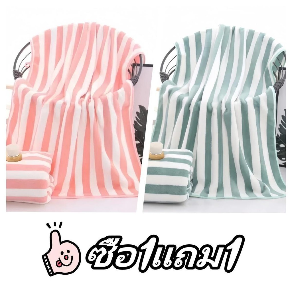 [ซื้อ 1 แถม 1] ผ้าเช็ดตัวผ้าขนหนูผ้าไมโครไฟเบอร์ผ้านุ่มดูดซับน้ำได้ดีขนาด 70 * 140 cm