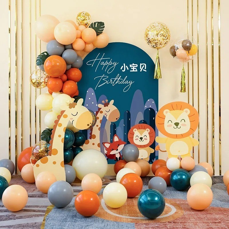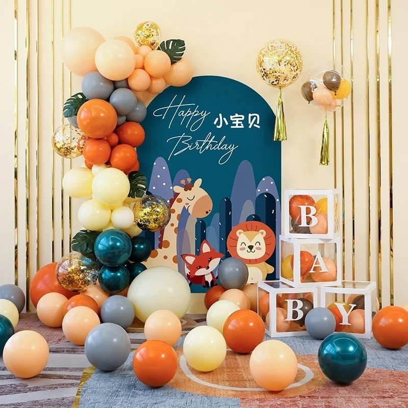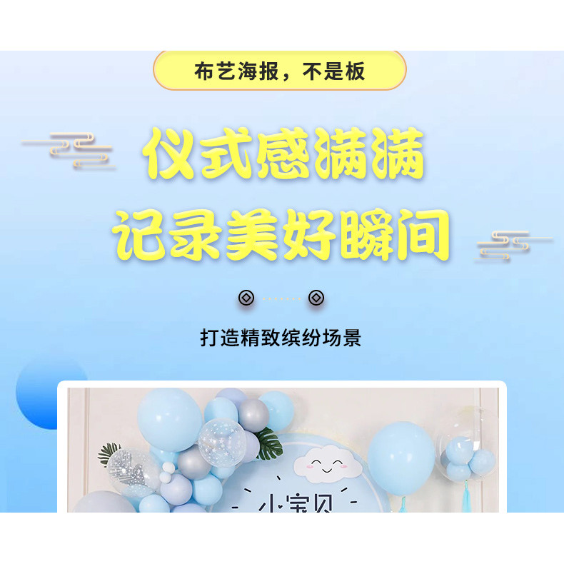 การตกแต่งฉากงานเลี้ยงวันเกิดปีแรกของทารกเด็กชายและเด็กหญิงงานเลี้ยงร้อยวันโปสเตอร์บอลลูนพื้นหลังผนัง