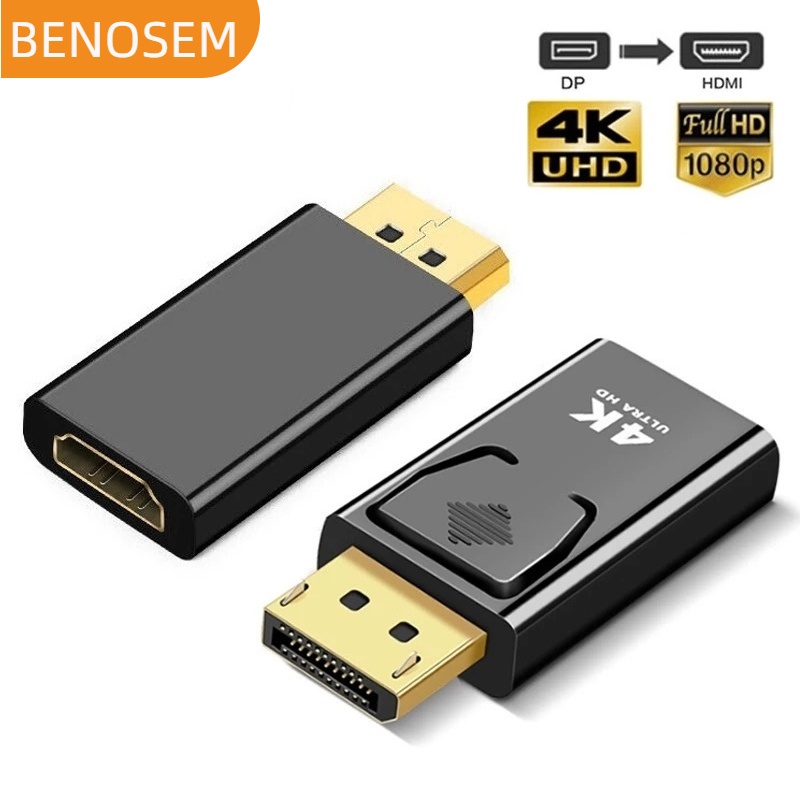 BENOSEM หัวแปลง DP to HDMI 4K 30Hz Displayport Adapter Male to Female Converter DisplayPort to HDMI สำหรับ PC TV Projector DP to HDMI หัวแปลง